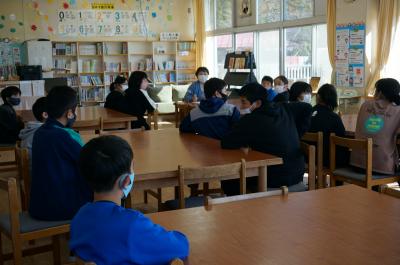 次に、矢吹先生より、図書室の使い方や約束事、本の選び方等についてお話がありました。こちらのお話もみんな真剣に聞くことができました。
