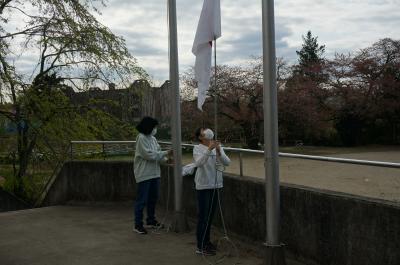 毎朝、国旗や校旗を揚げてくれている運営委員会の6年生も、「委員会活動がんばるぞ」と気持ちを新たに、活動をしていました。
