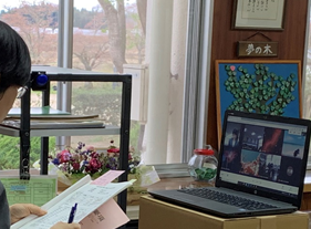 PTA総会・スポーツ文化後援会総会は、コロナ対策としてオンラインで校長室と各教室をつないで開催しました。