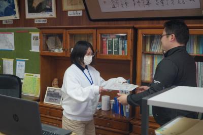 4月7日(水)、矢吹交番署員さんお二人においでいただき、家庭の交通安全推進員委嘱状交付式が行われました。
