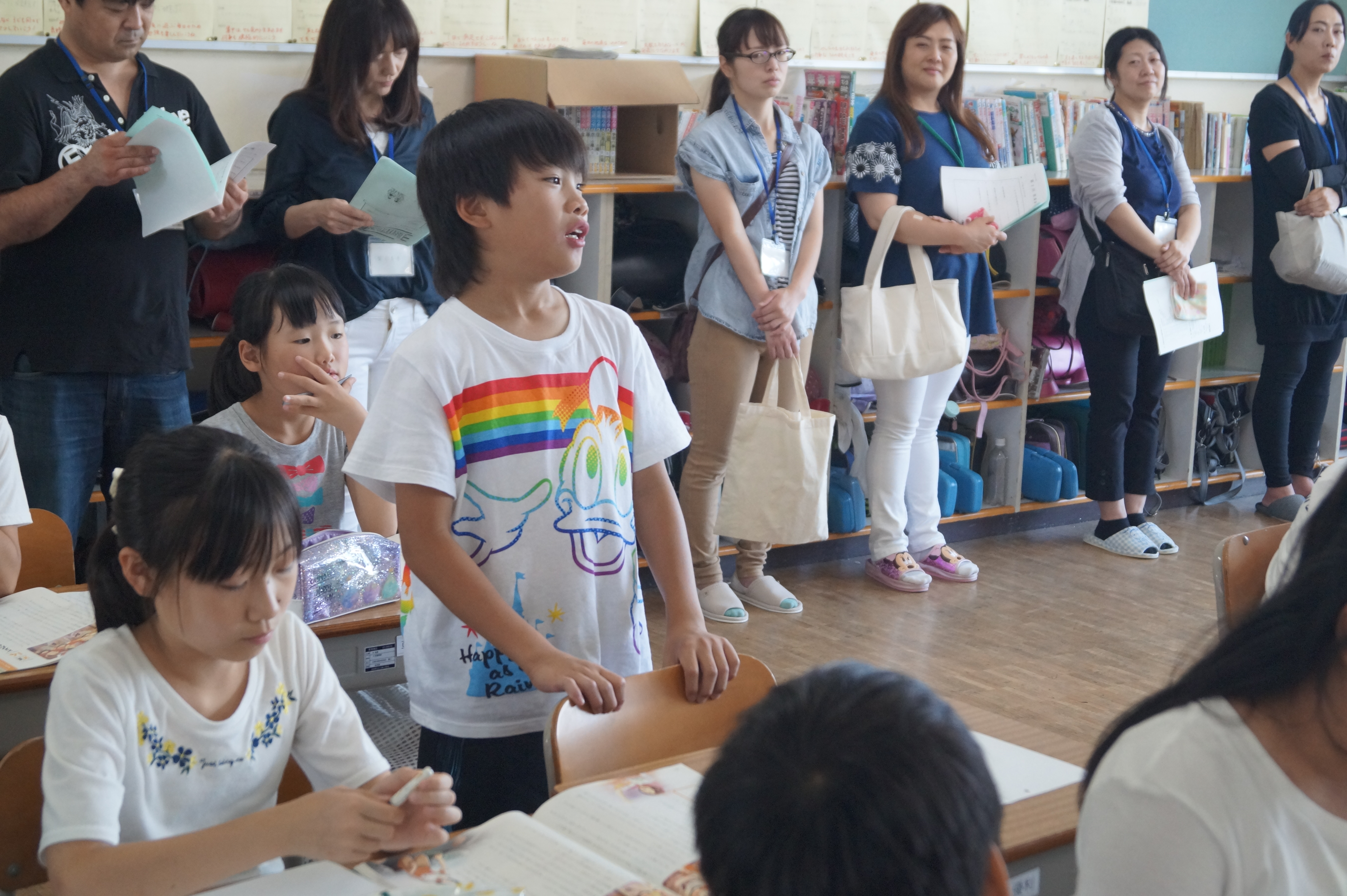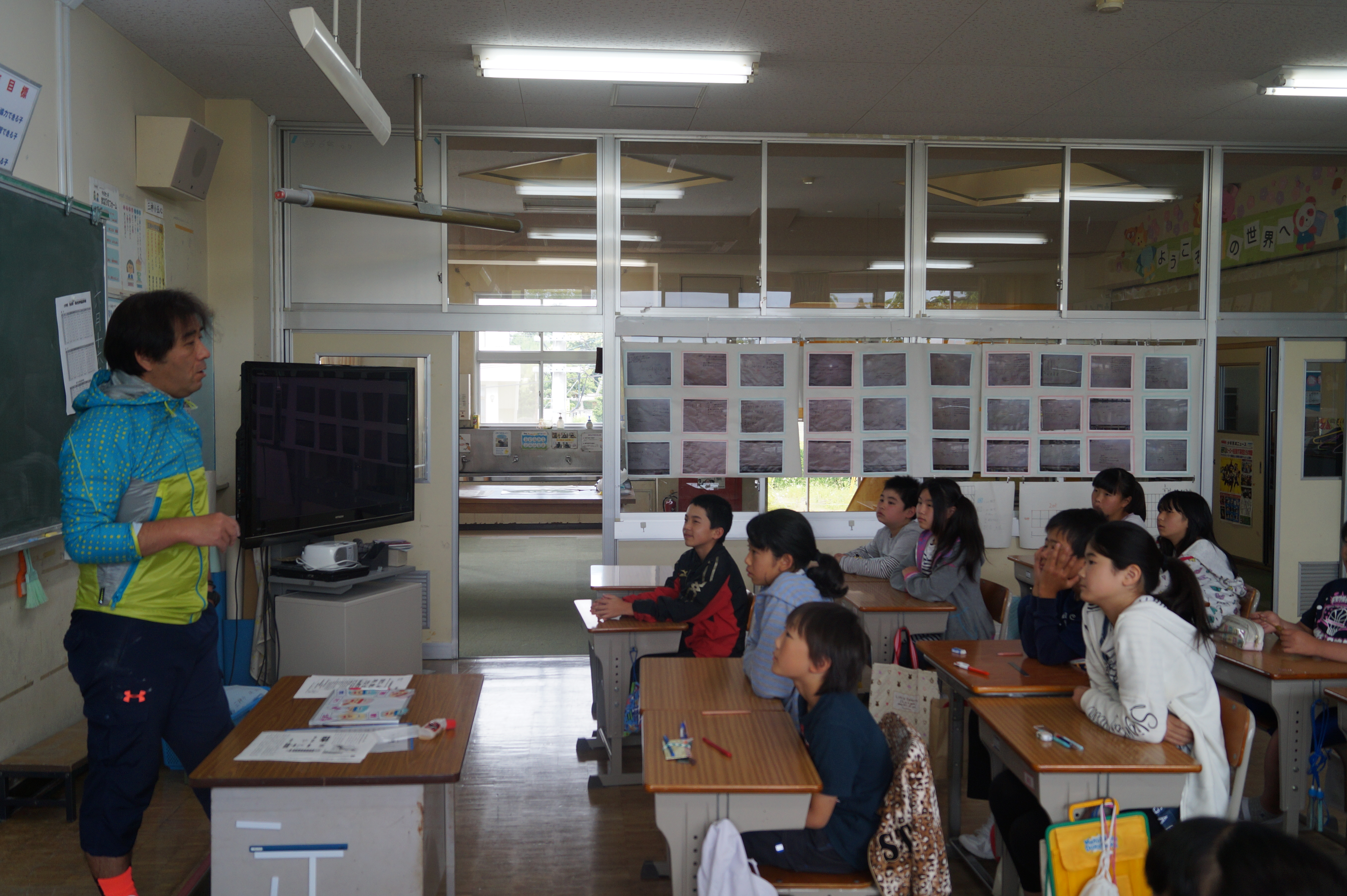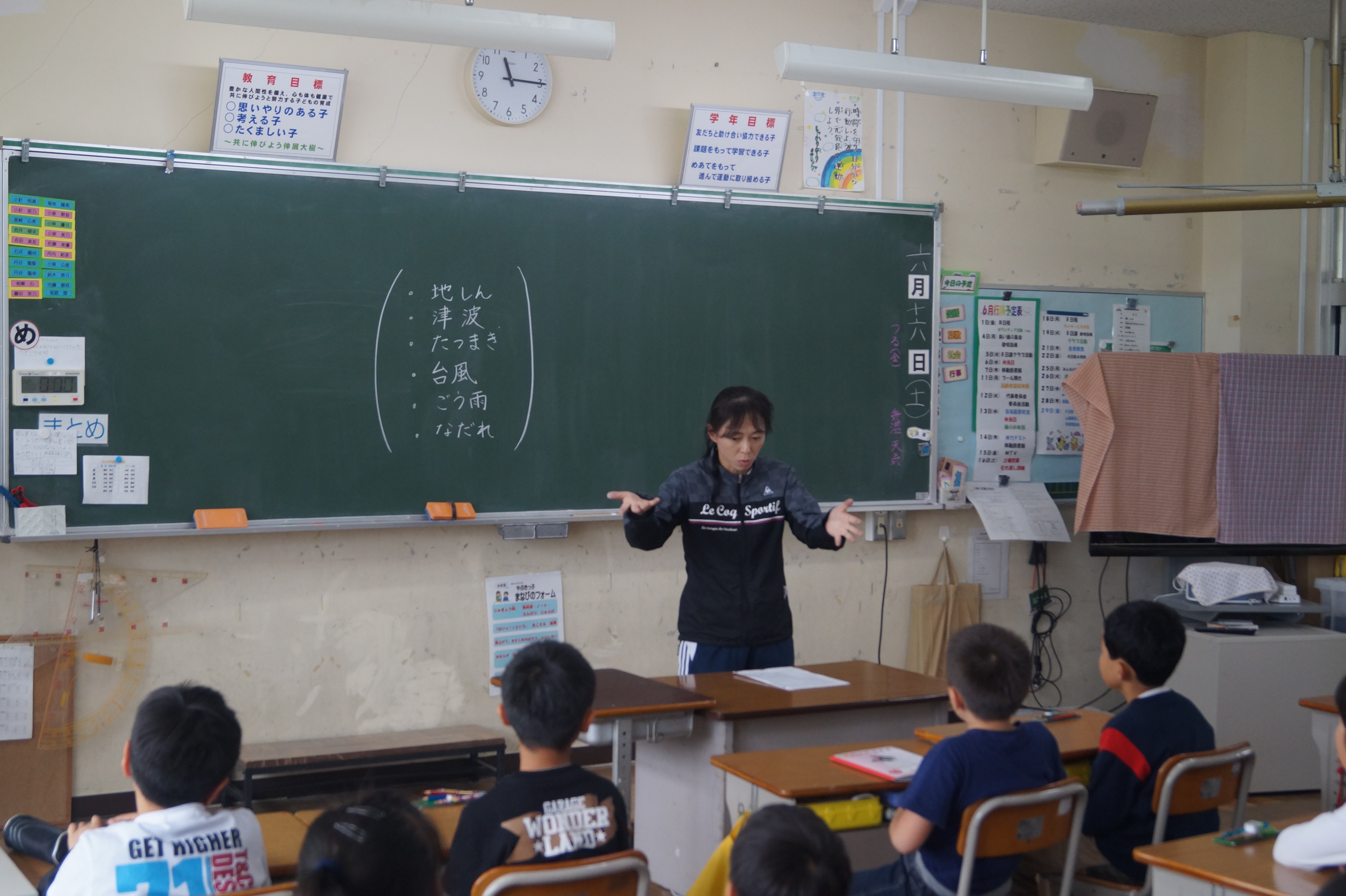 4年生の教室では、担任の先生が、東日本大震災が起きた時の経験を話され、当時の小学生がどのように避難したのかを、子ども達が真剣に聞いていました。