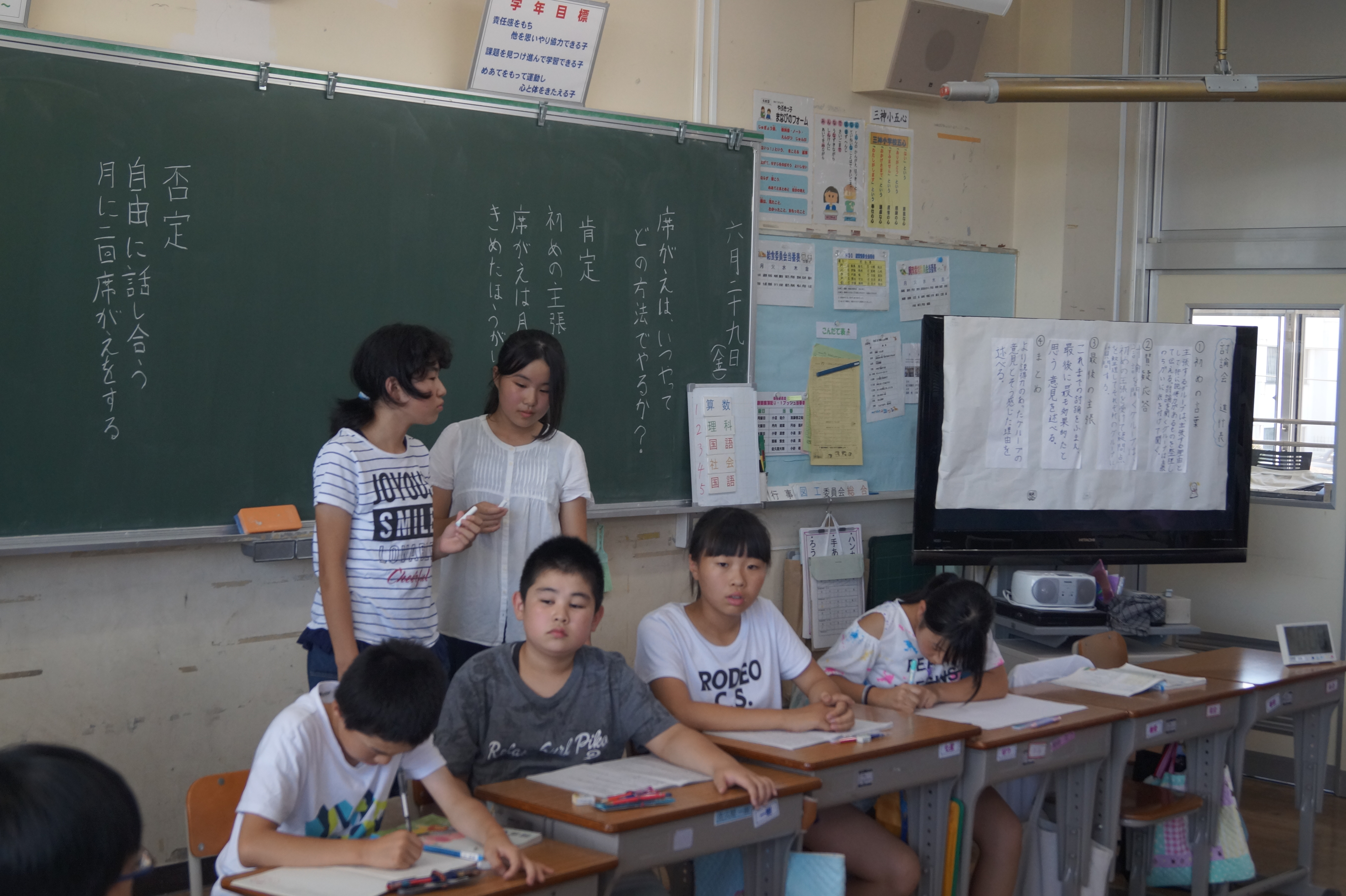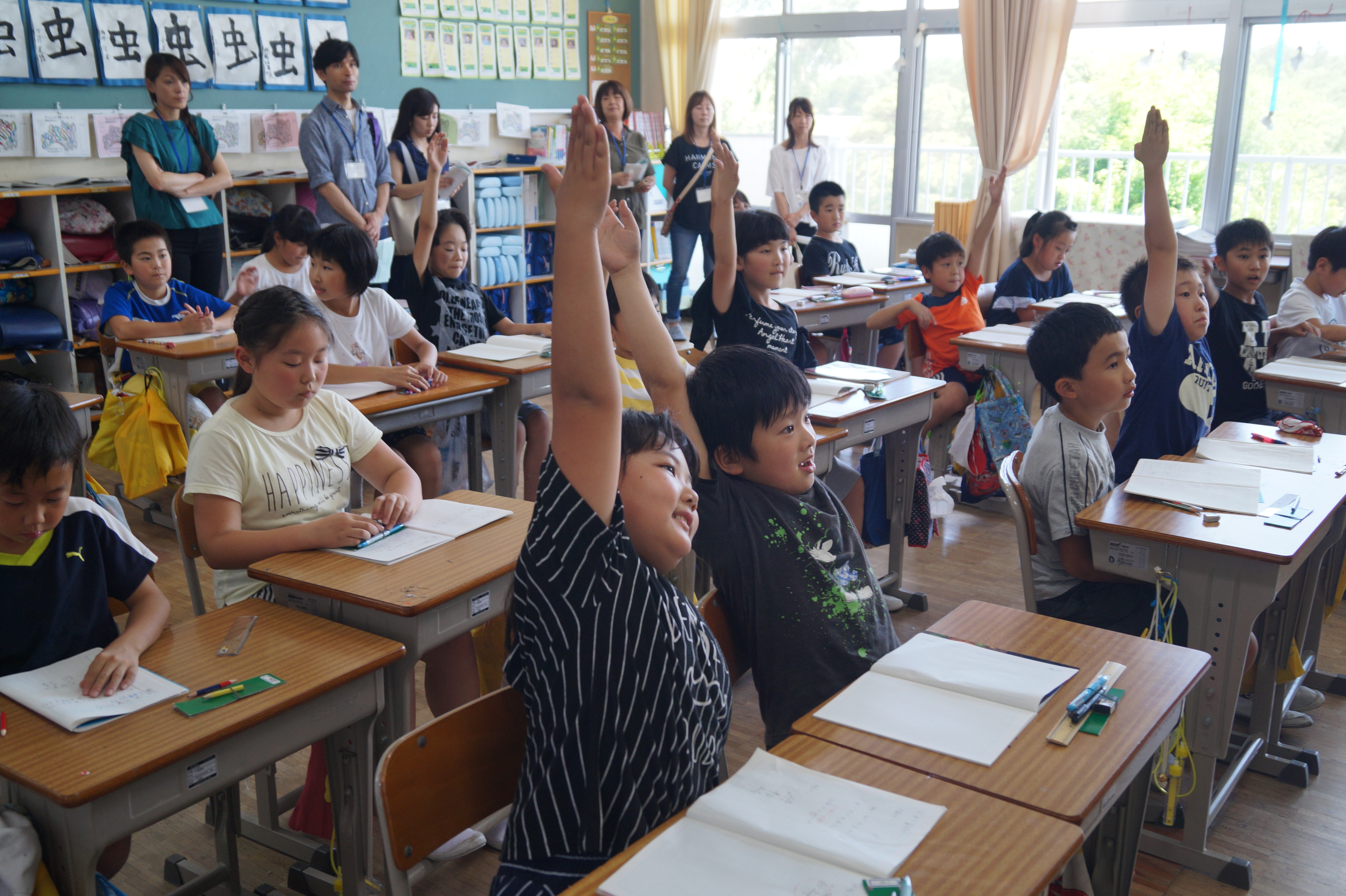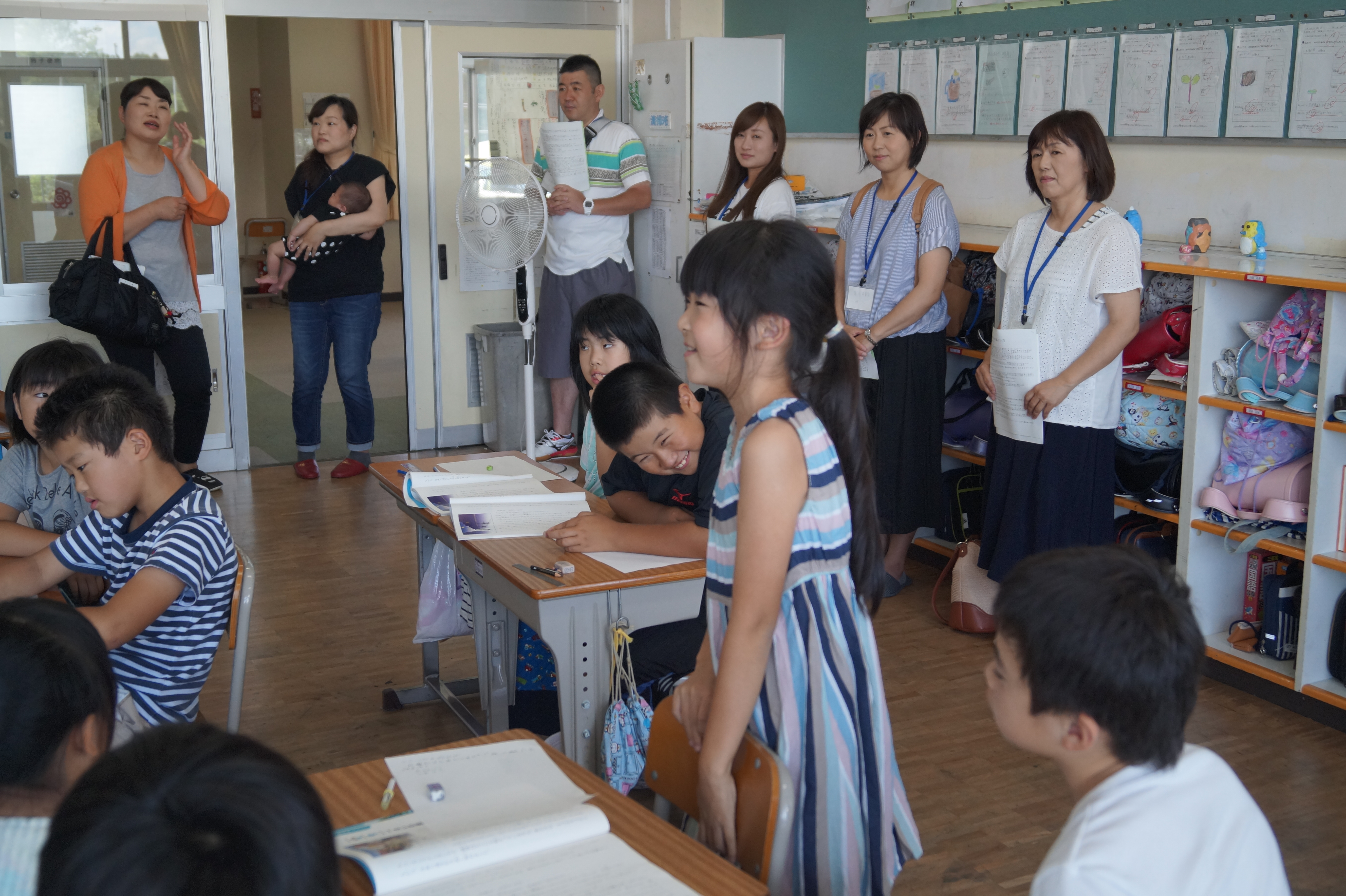 4年生の教室では、担任の先生が、東日本大震災が起きた時の経験を話され、当時の小学生がどのように避難したのかを、子ども達が真剣に聞いていました。