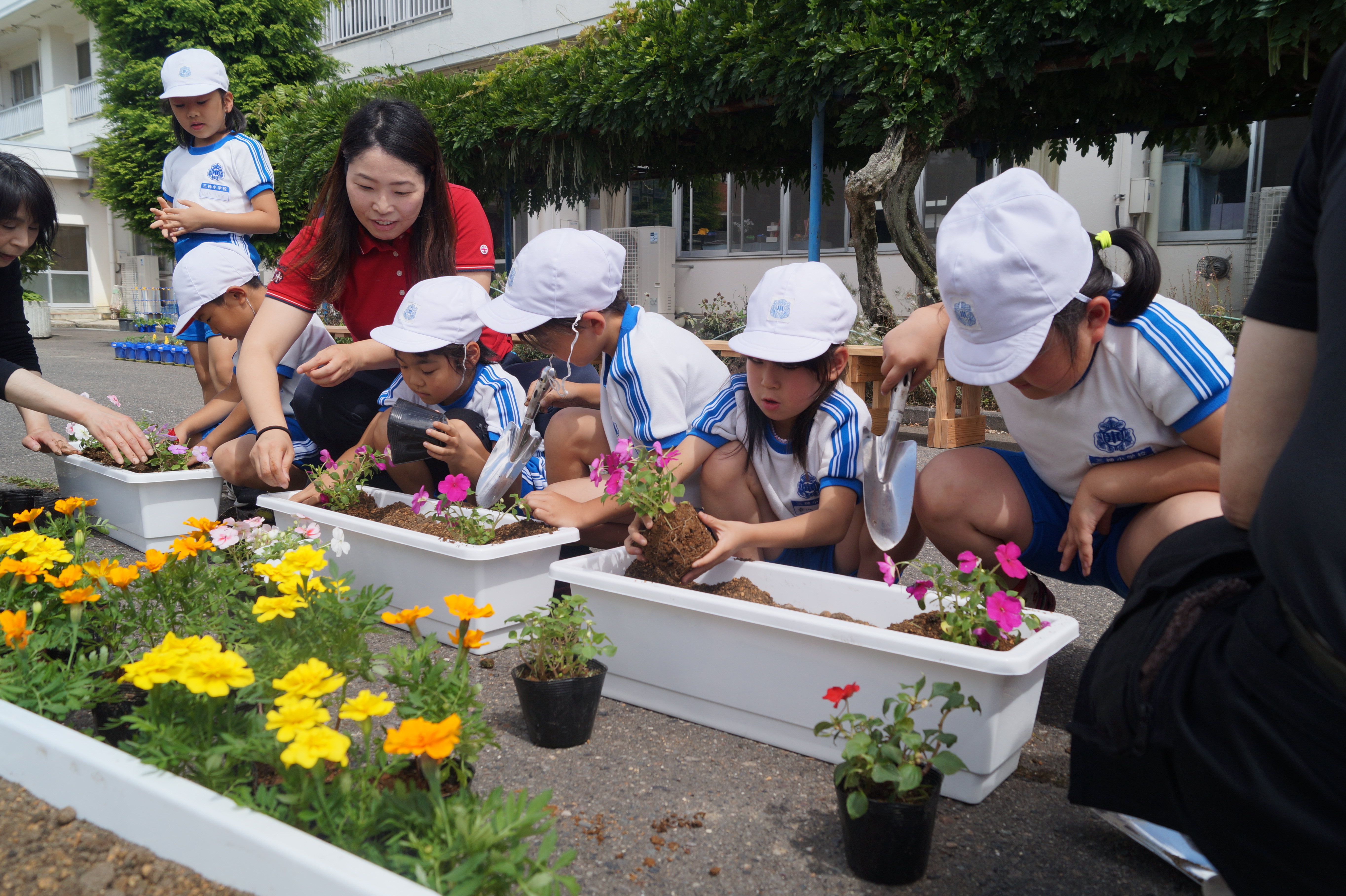 花を育てることを通して、豊かな心を育むことをねらいとした活動です。
