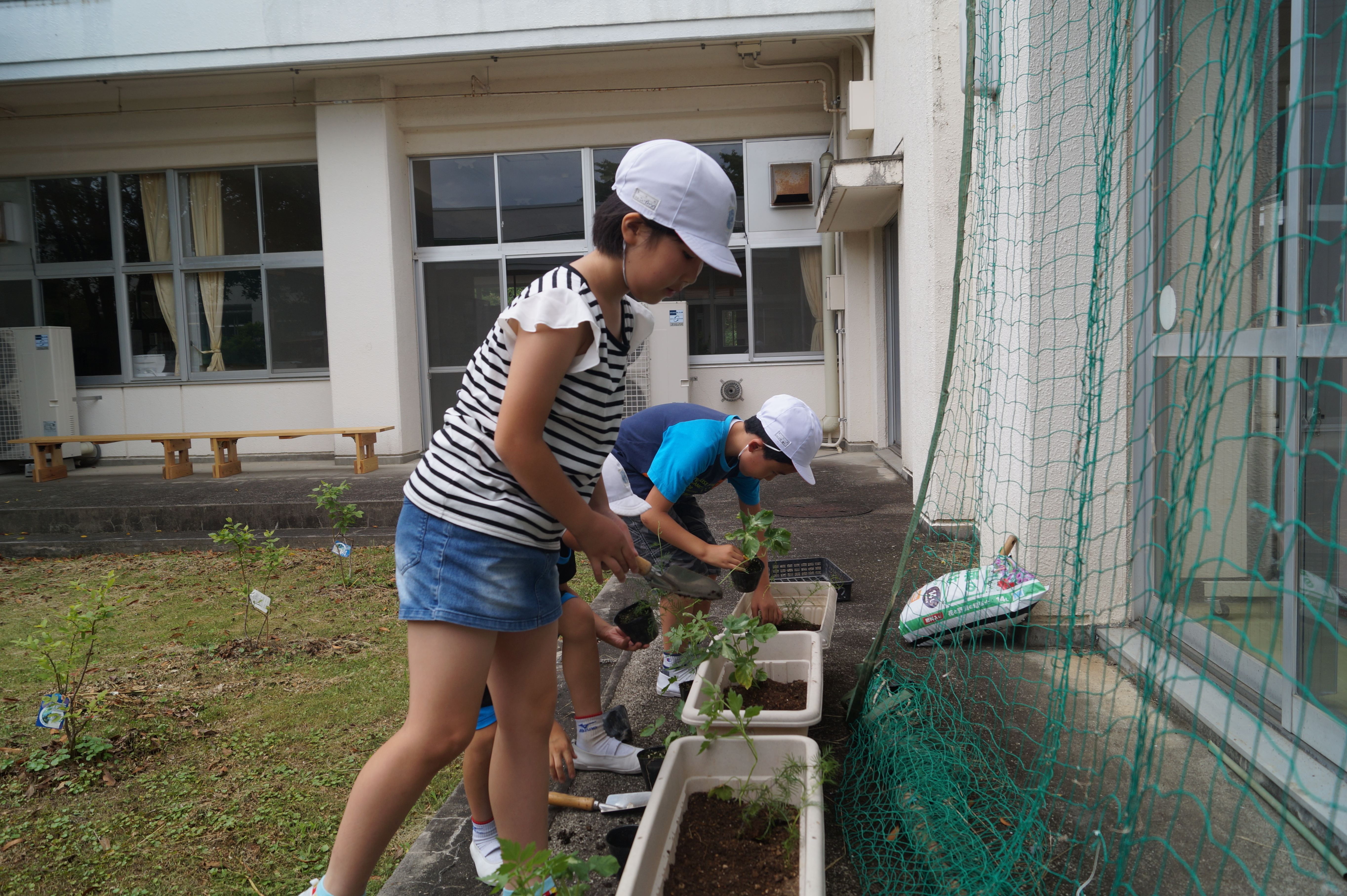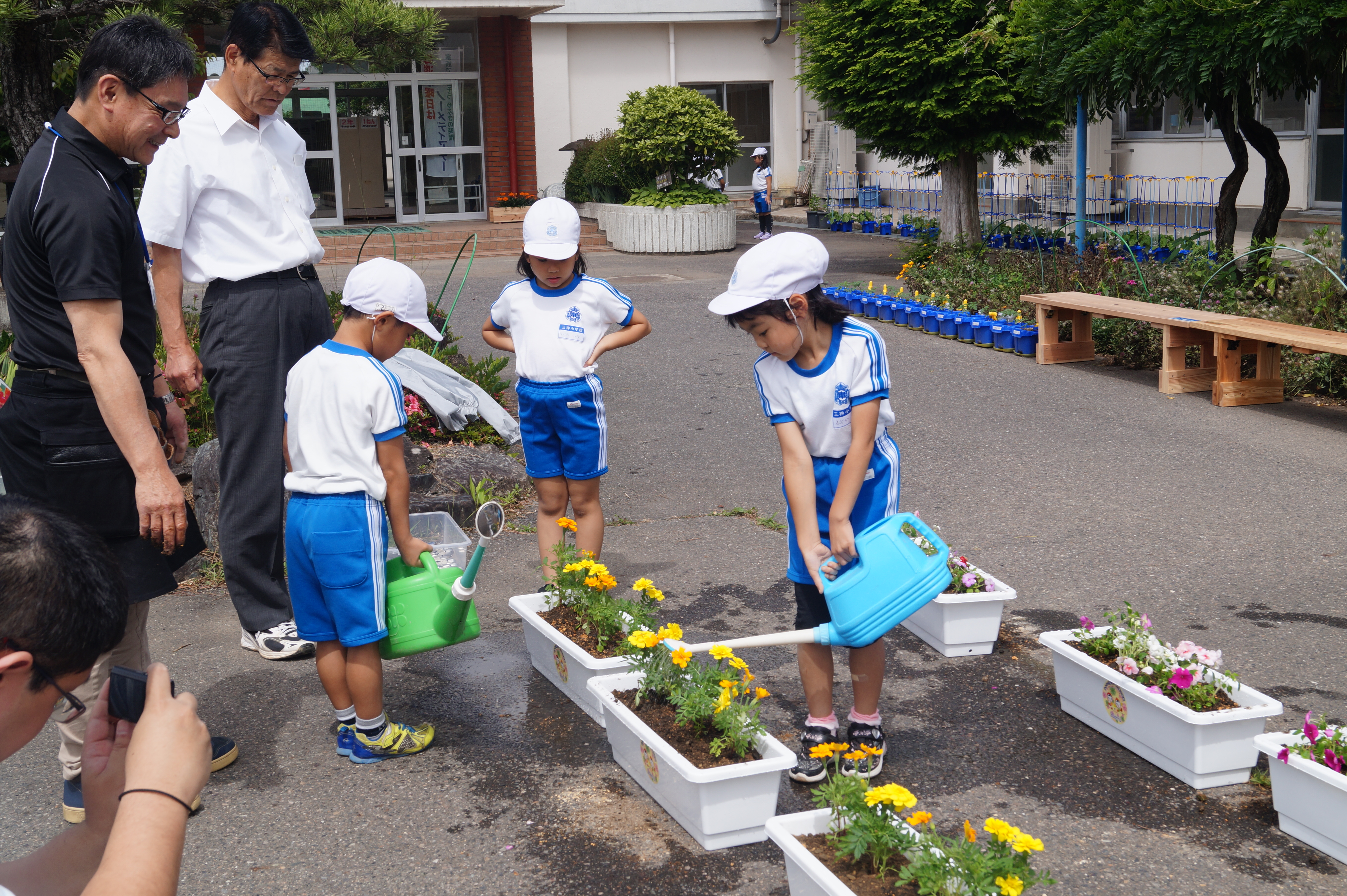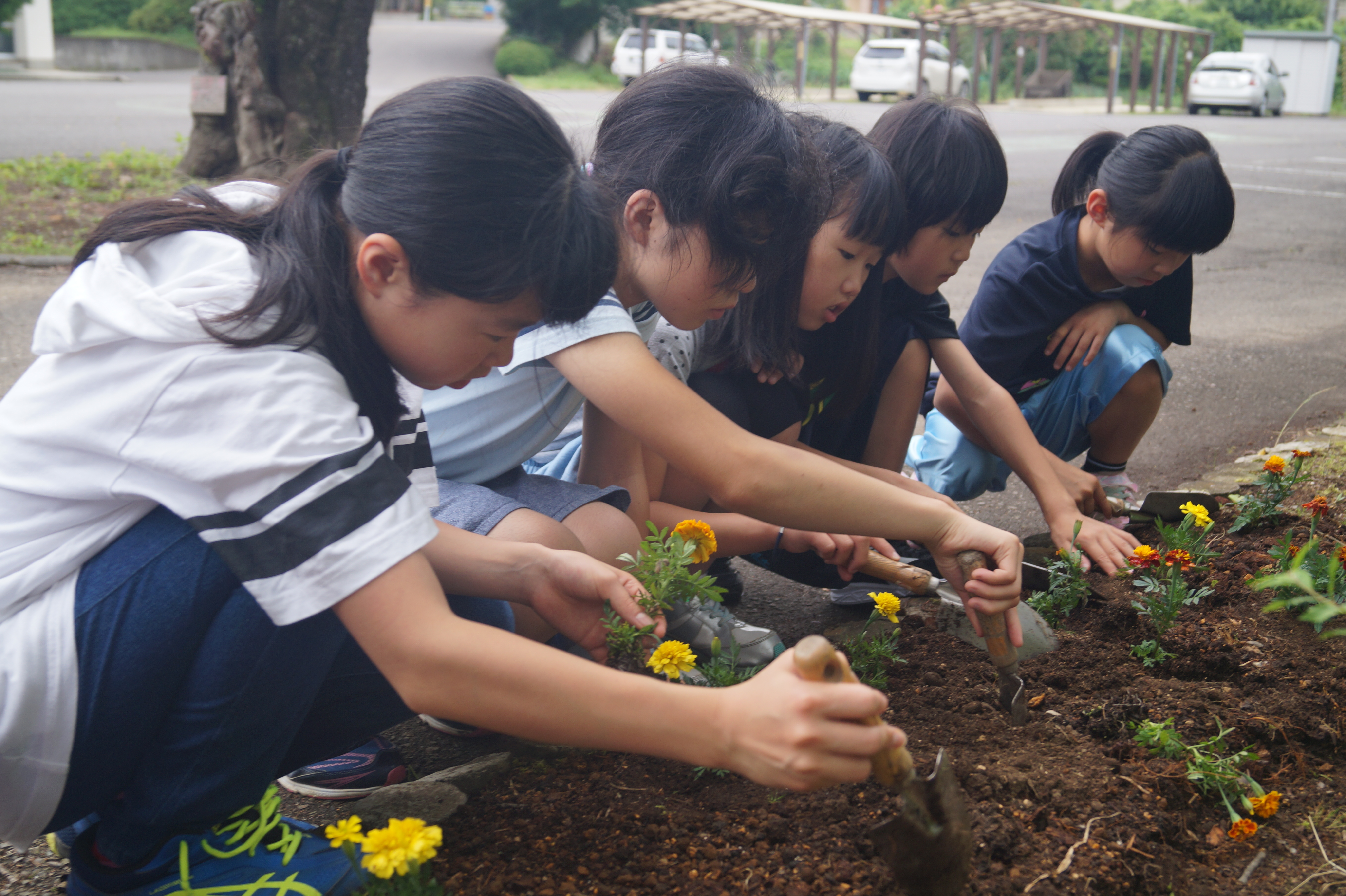 矢吹町の小河久子さんから、寄附していただいた花を、飼育栽培委員の子ども達が植えました。