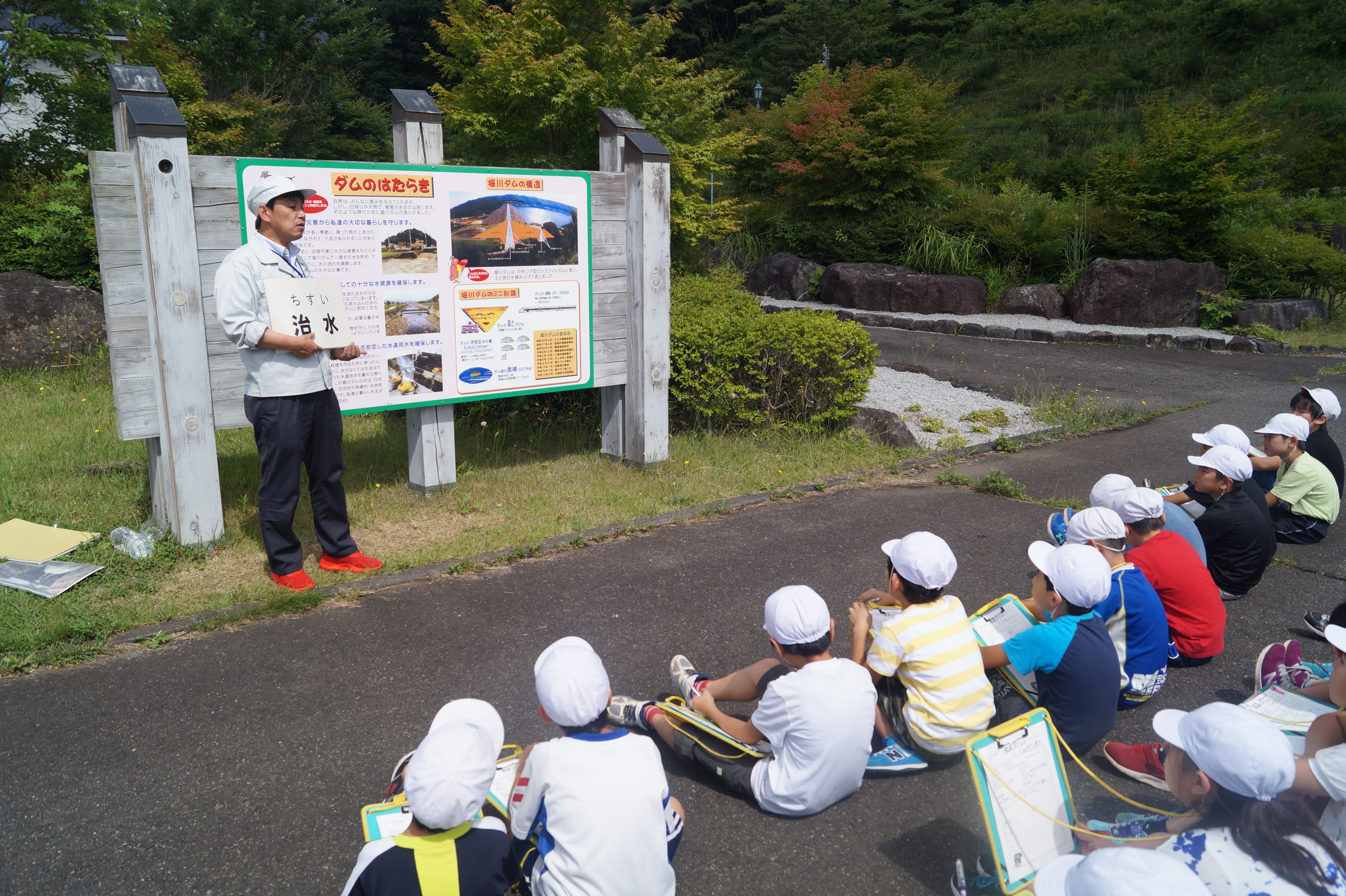 堀川ダムでは、ダムの3つの役割、治水、利水、環境保全について詳しくお話を聞いたり、ダムの内部まで見学させていただいたりして、働きや仕組みについて理解を深めることができました。