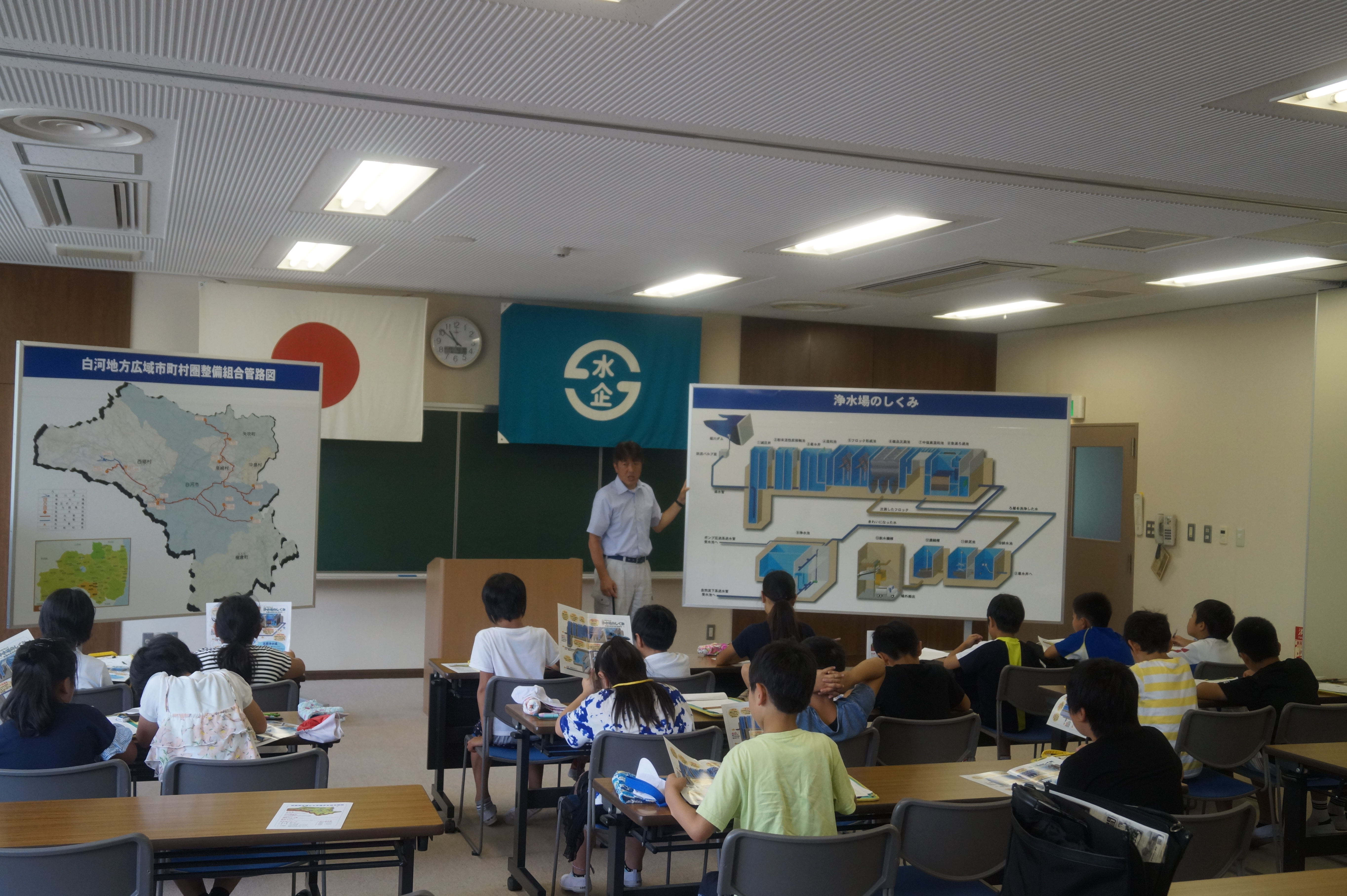 最後に、浄水場の方から、ダムの水と浄水場から送られる水が見分けられるか、クイズが出されました。どちらもきれいであり、子ども達は見分けがつきませんでした。見分けがつかないくらいダムの水はきれいであり、環境を守ることが自分達の命につながるということを教えていただきました。見学を通して、より学習を深めることができました。