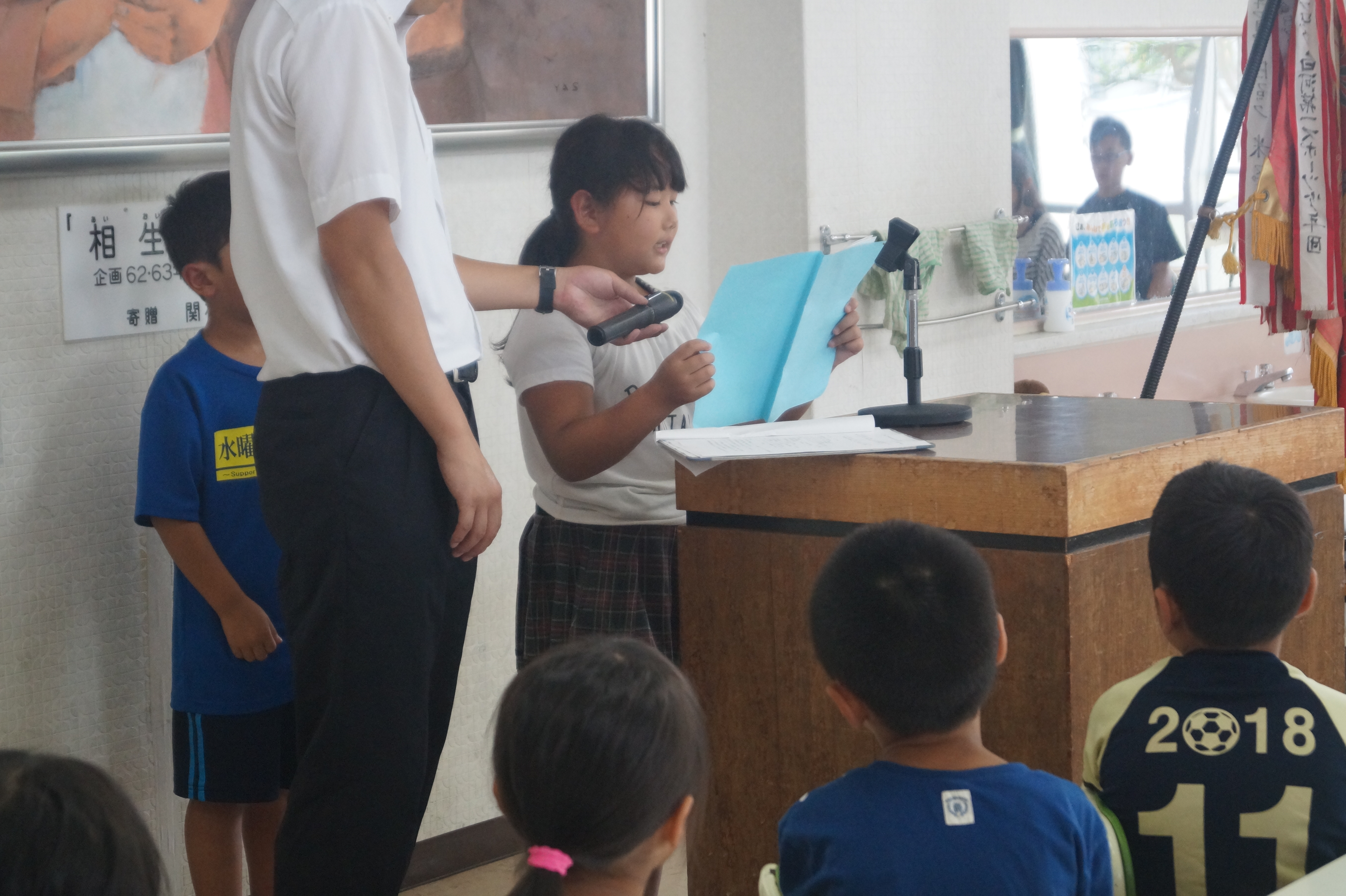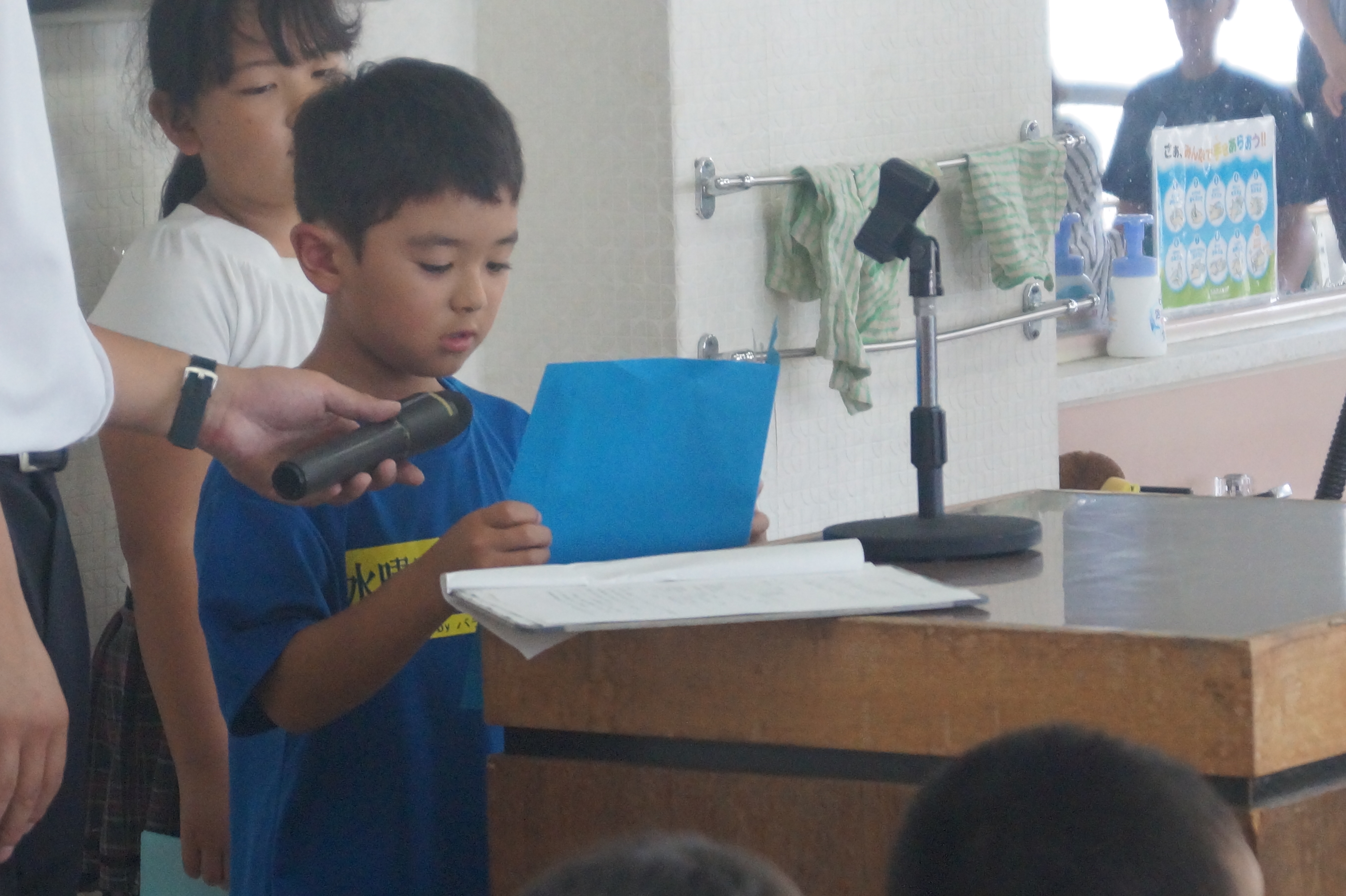 また、夏休みに向けて、しっか学習すること、規則正しい生活をし、家族の手伝いをすること、そして何より自分の命を大切にすることについてもお話をいただきました。