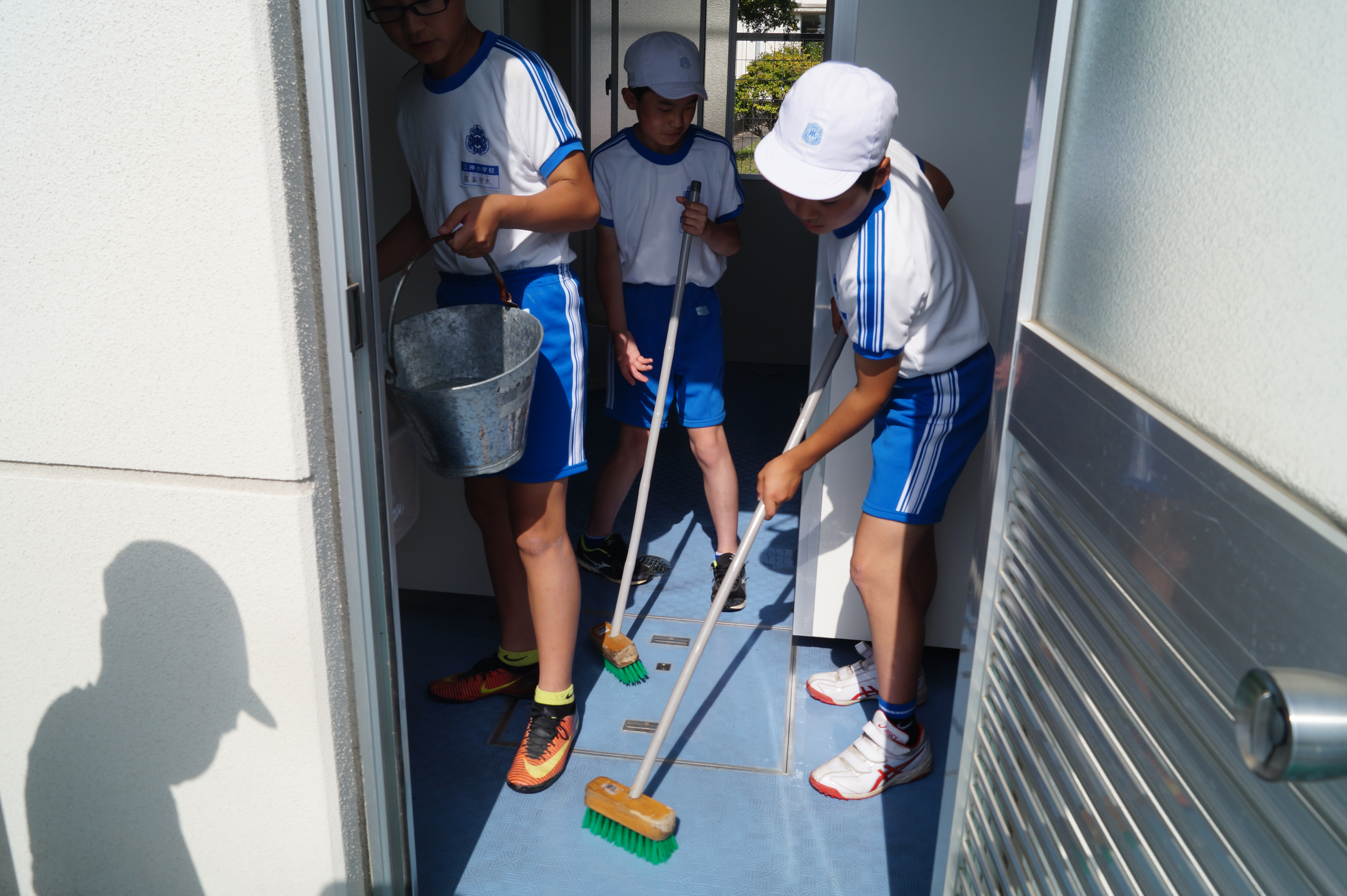 6年生の力でトイレの床、便器、更衣室ぷの中がぴかぴかになりました。