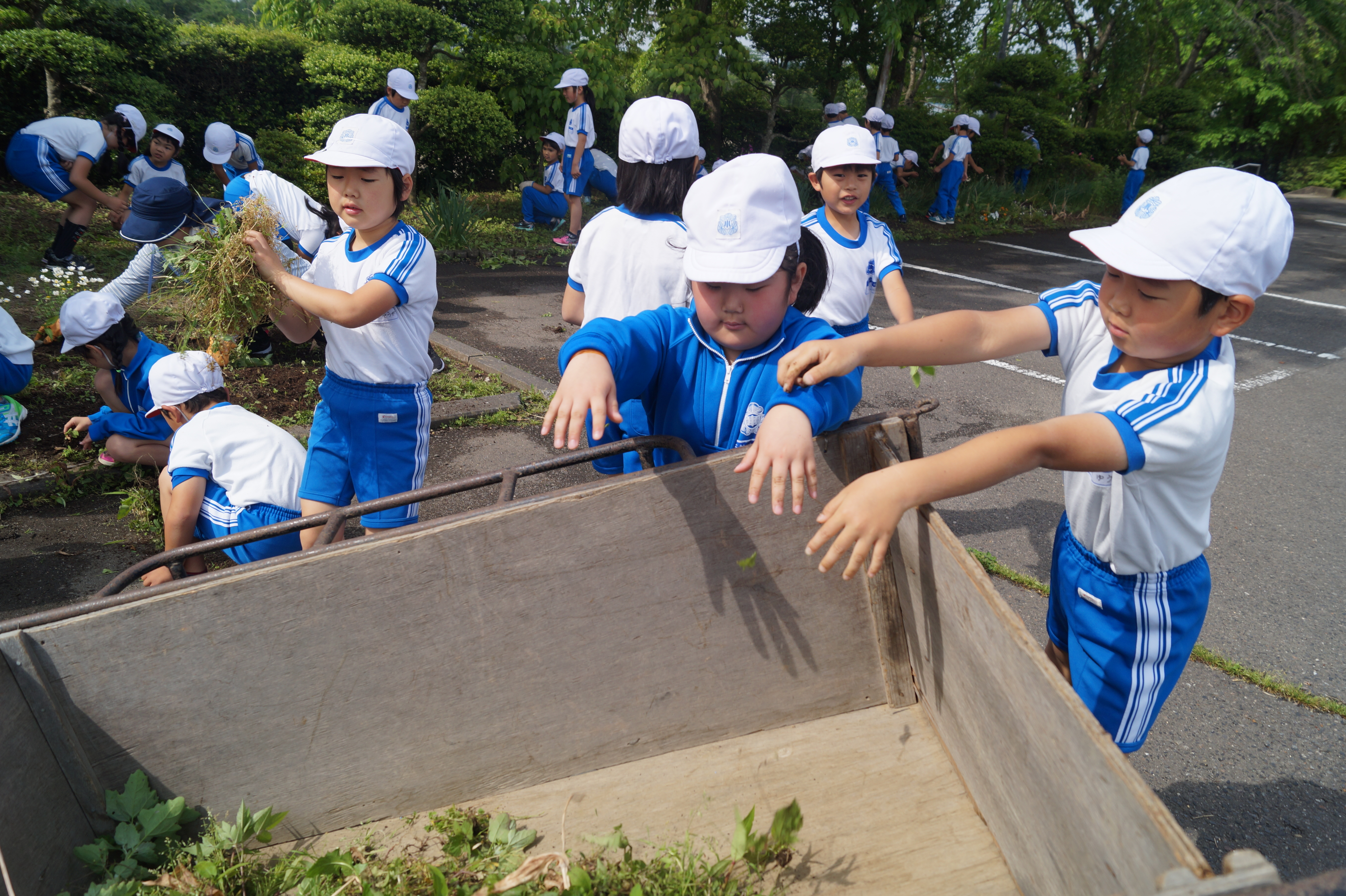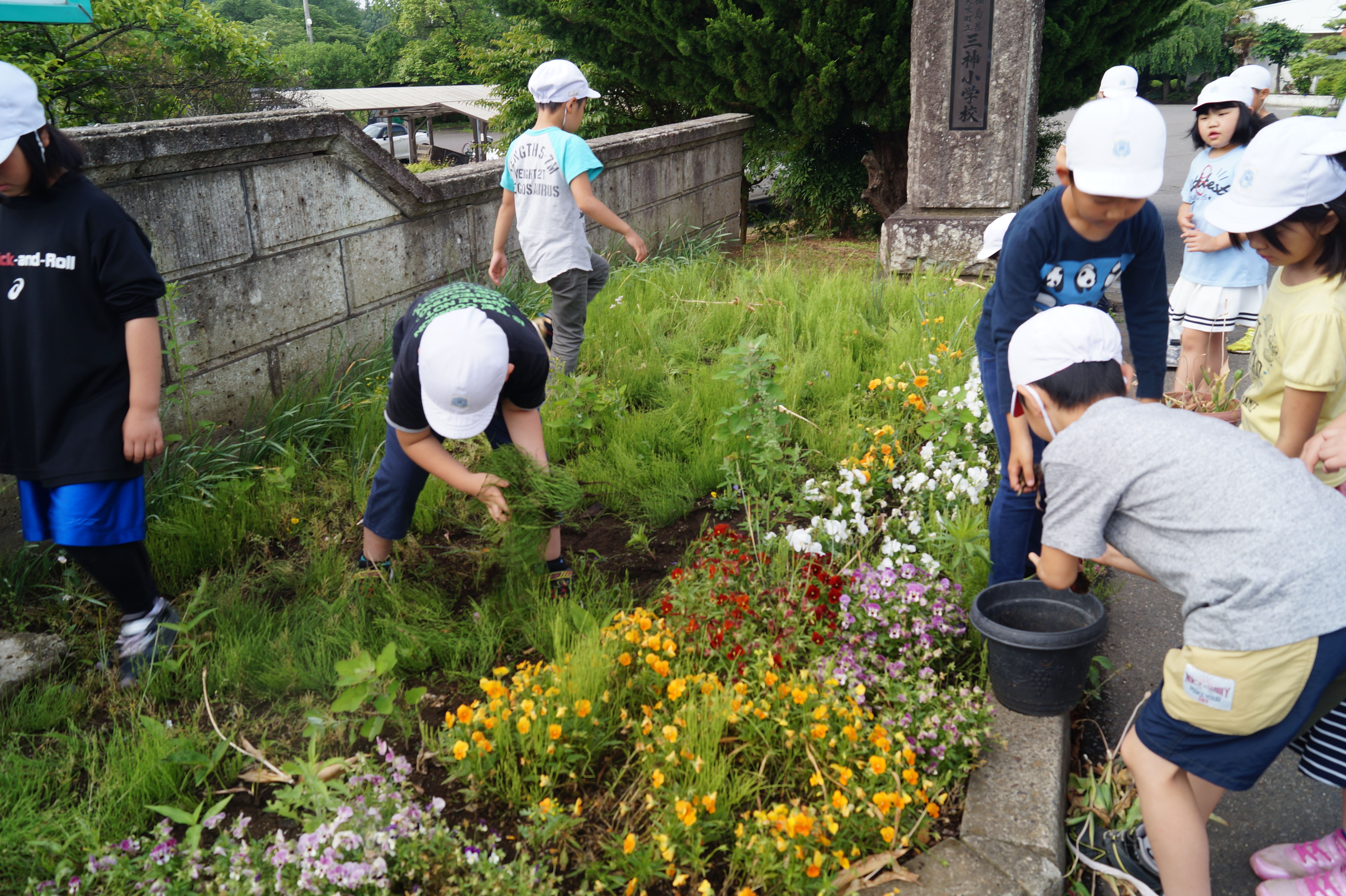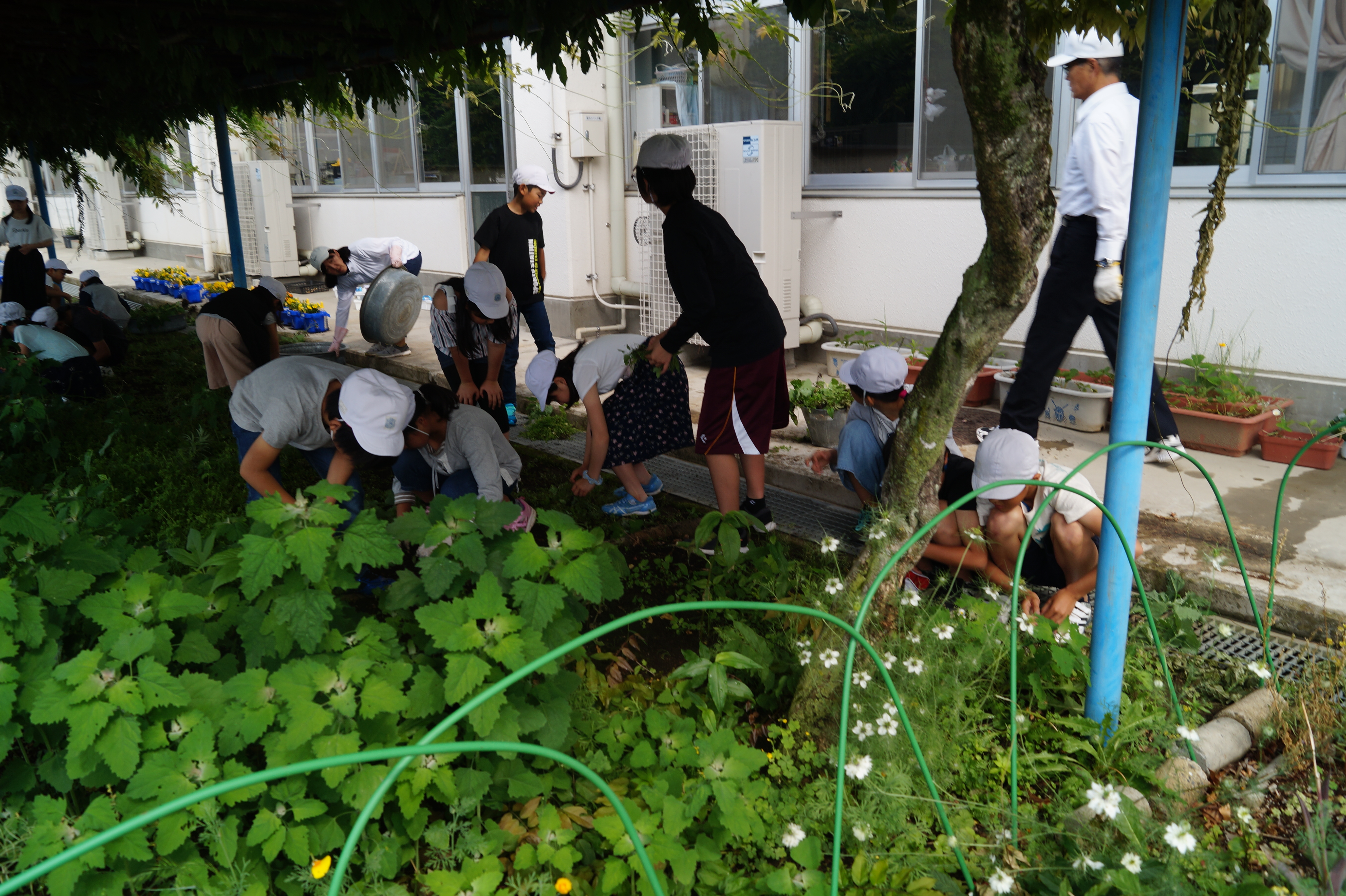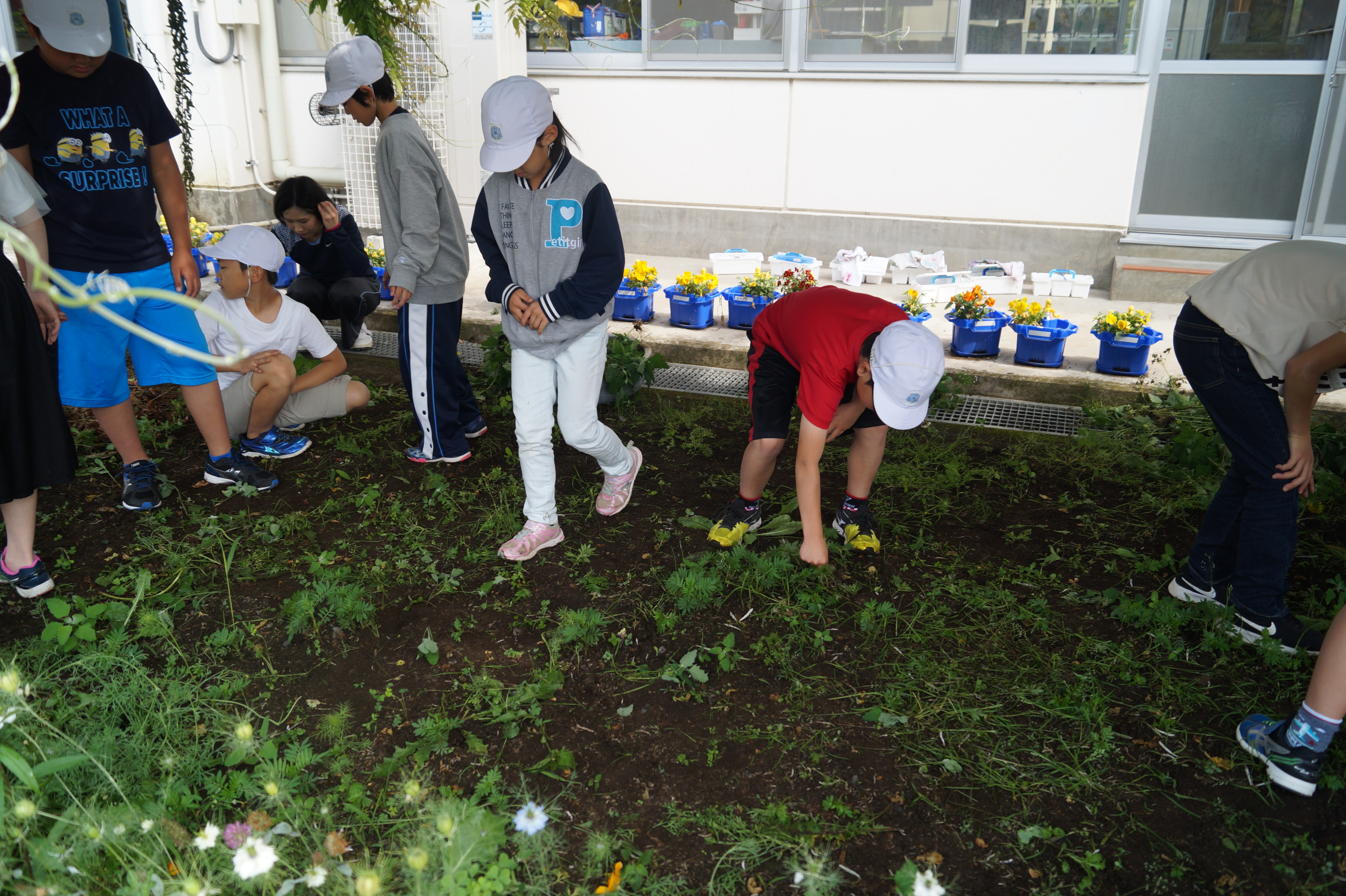 その後、第1回目の活動として、各学年ごとに、花壇の除草や、花の種まきなど、花壇の整備を行いました。