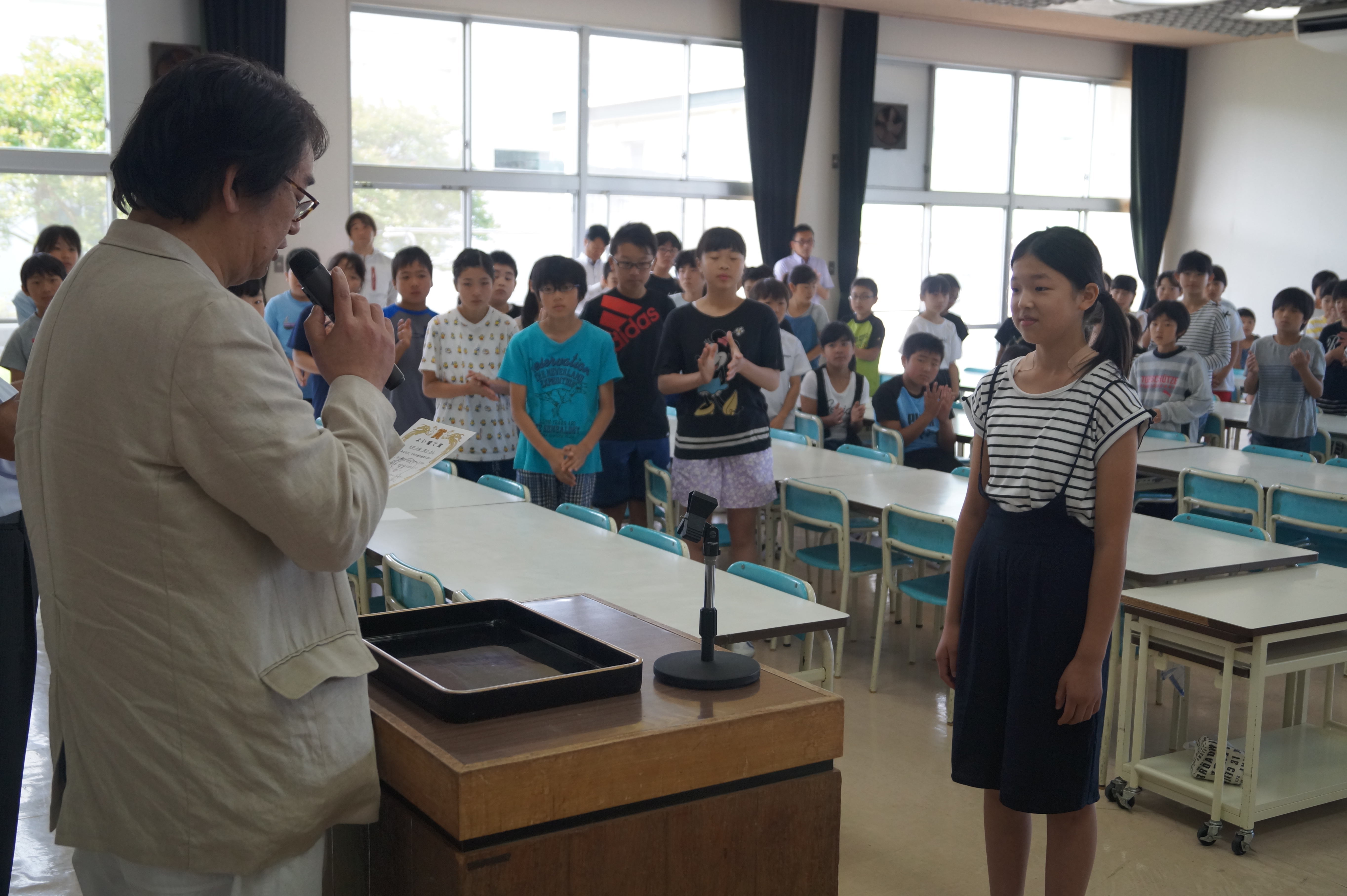 よい歯の集会が行われ、学校歯科医の佐久間義道先生から、むし歯ゼロの児童、歯の治療を完了した児童を表彰していただきました。