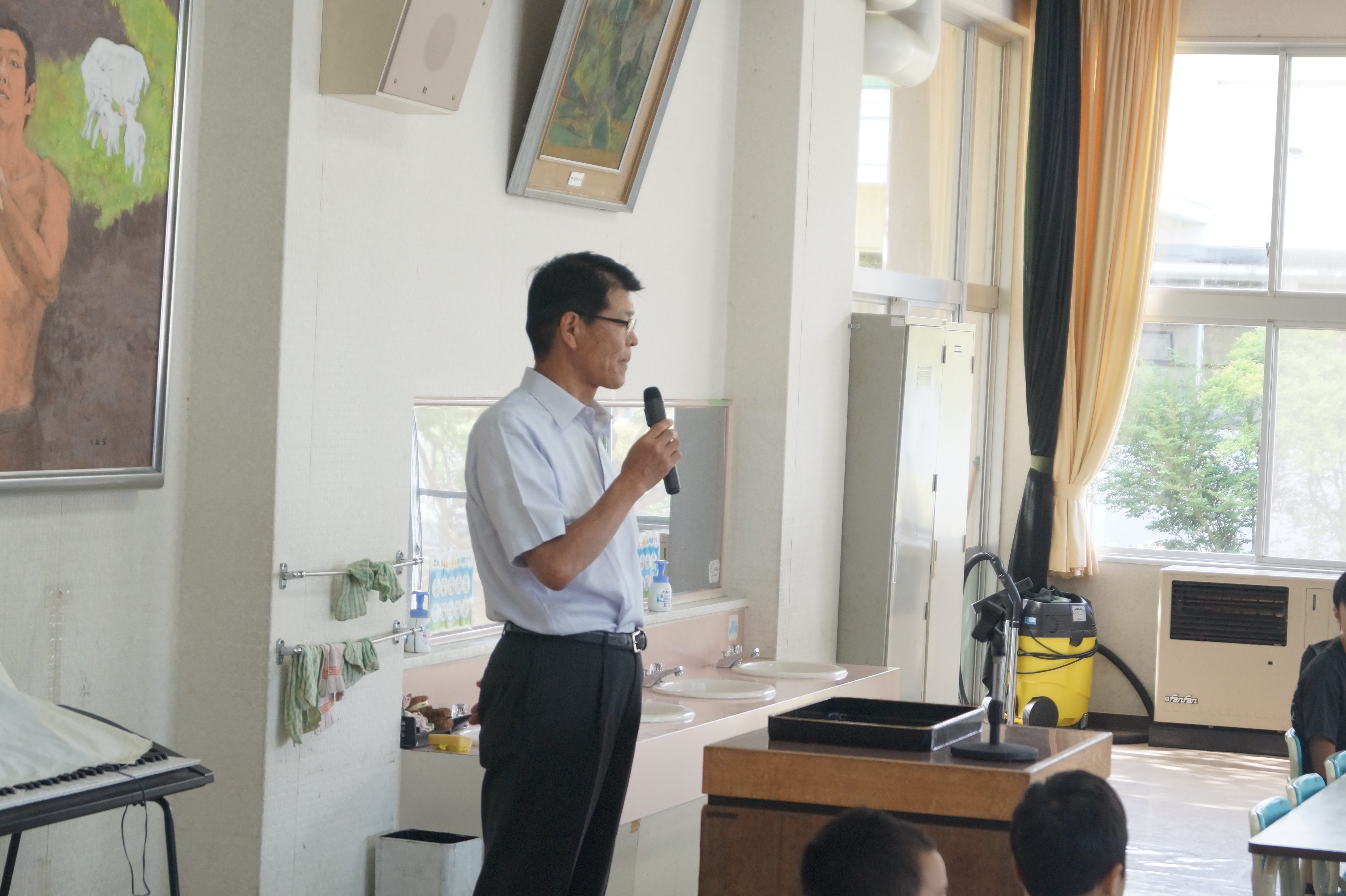 まず、校長先生から緑を大切にし、守り育てていくことの意義についてお話をいただきました。