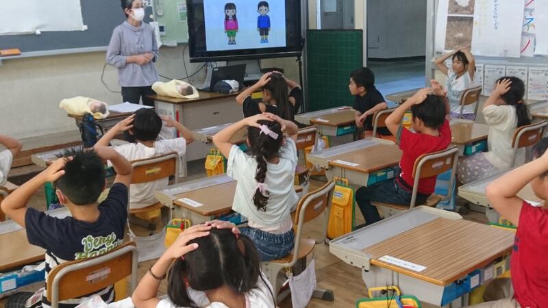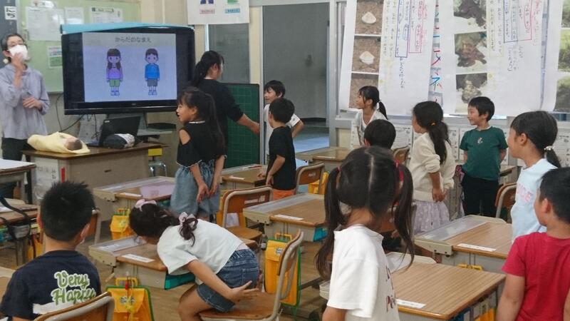 そして,本日のメインテーマの「たいせつな からだ」についての学習に入っていきました。体の名前を確認して,体の中の器官の名前や場所を教えていただき,男の子と女の子の違いにつて確認しました。その際,男子の外性器の名前が挙がったときに子どもたちから笑いが起こり,講師の先生から他の体の部分と同じもので,大切にしなければならない部分なので,笑うことはおかしいという話をされ,子どもたちは真剣に聞くようになりました。その後,水着で隠れる体の部分(プライベートゾーン)は,他人に見せたり,触らせたり,他人のを触ったりしてはいけないという話を聞きました。