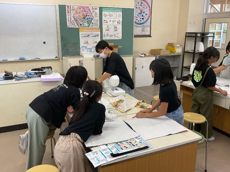 家庭科クラブ:ミシンを使ってトートバッグや自分の作りたいものを作る(手縫いで小物づくりをする子も)