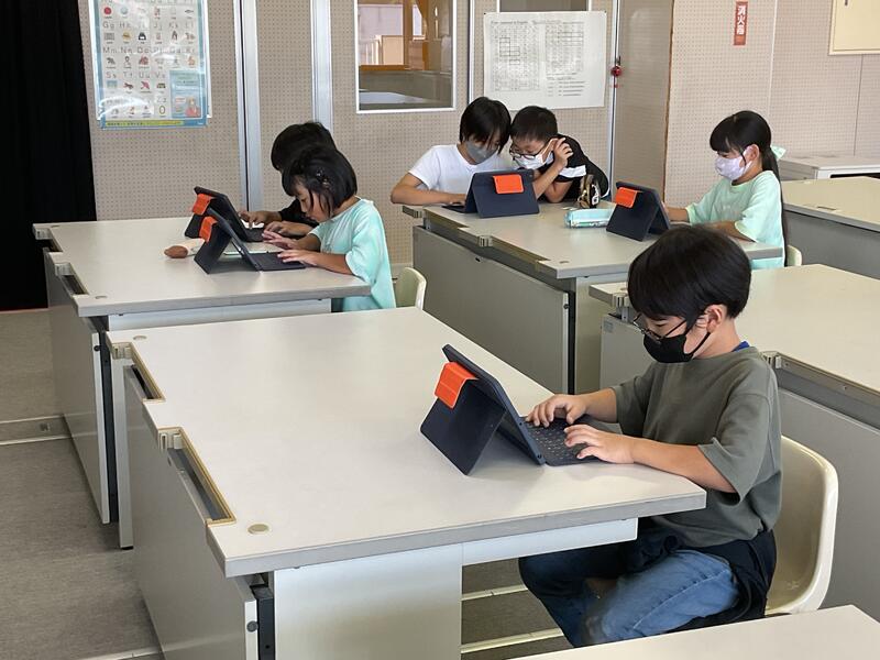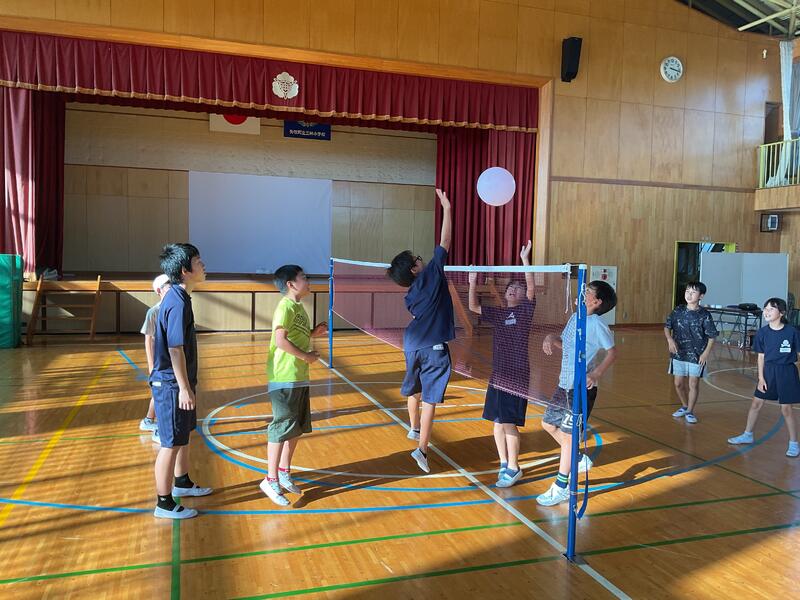 これは,「矢吹町スポーツ✖デジタル振興プロジェクト支援業務」における「スポーツを活用した英語教育」の実証事業で,昨年度から取り組んでいるものです。今年度は,本校3年生の国際理解教育において10回程度実施します。