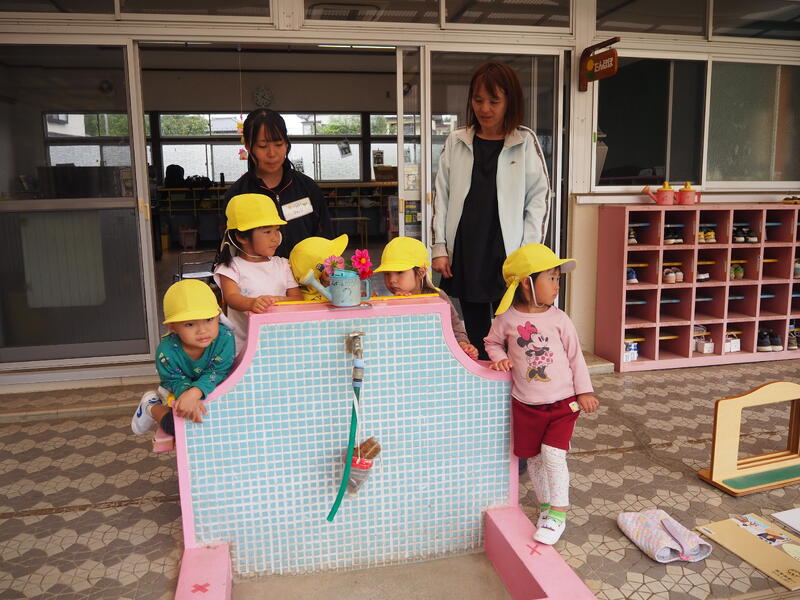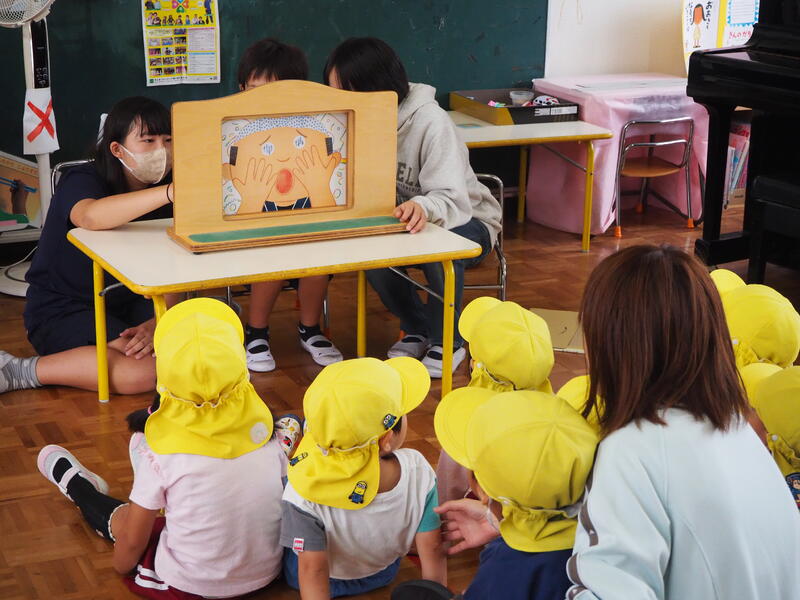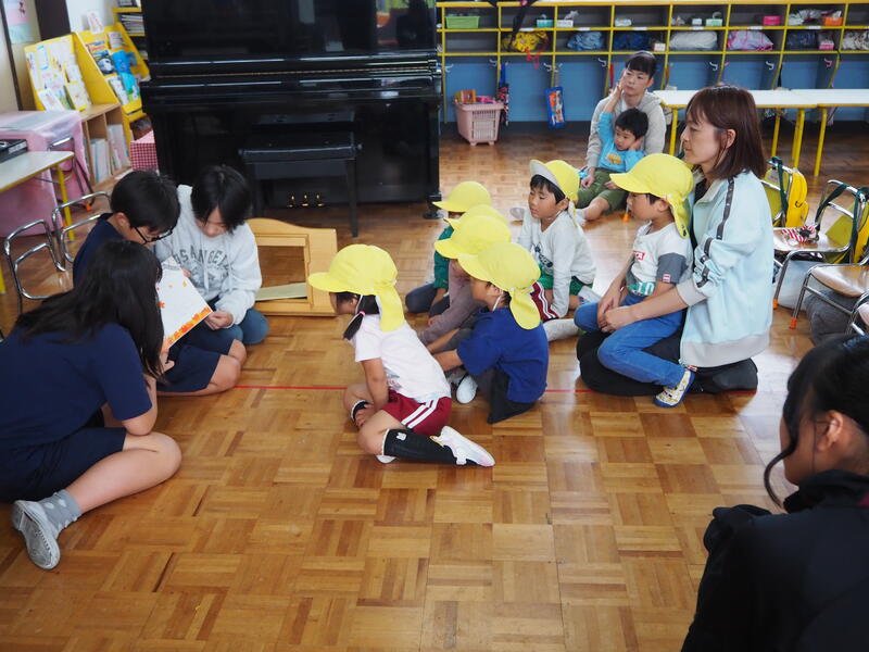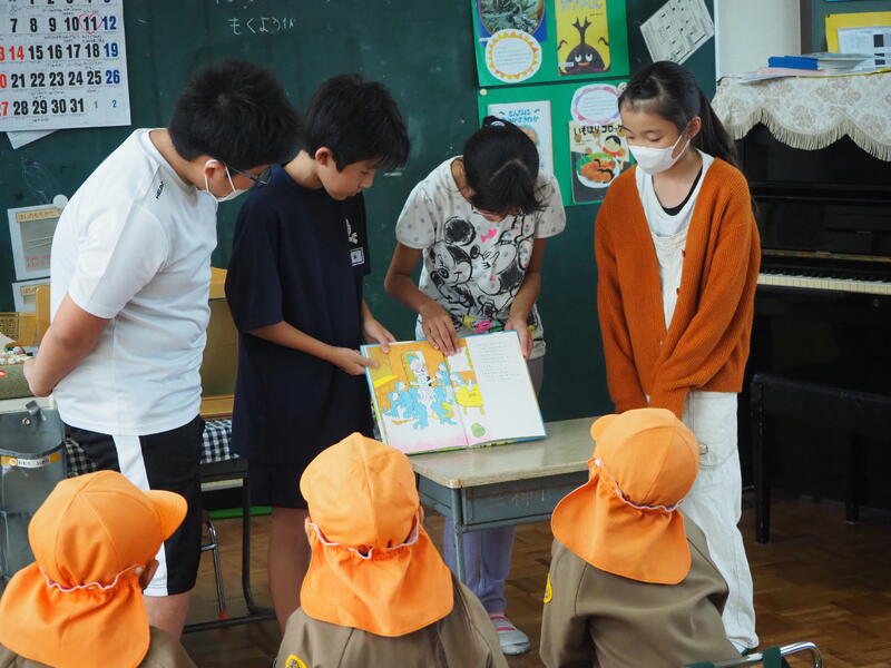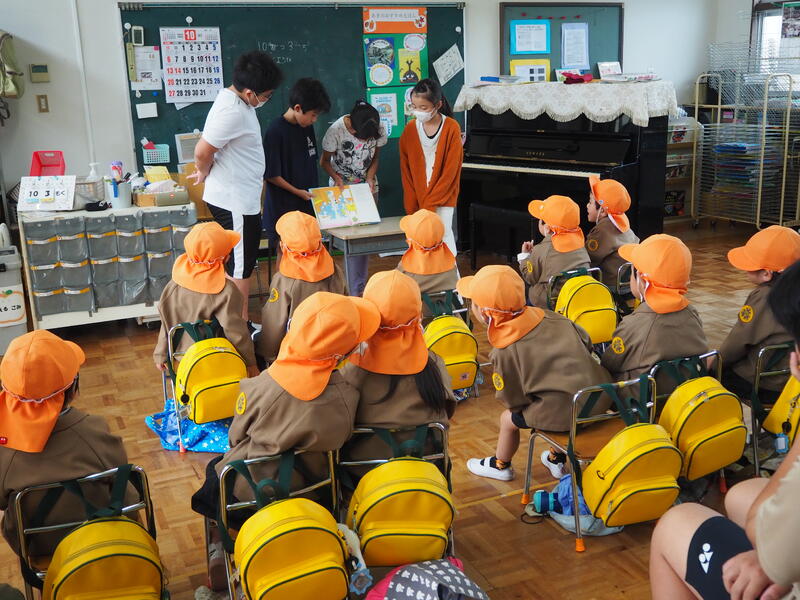 10月3日(木)の昼休みに,図書委員会の子どもたちが三神幼稚園に行って,第2回の読み聞かせをしてきました。