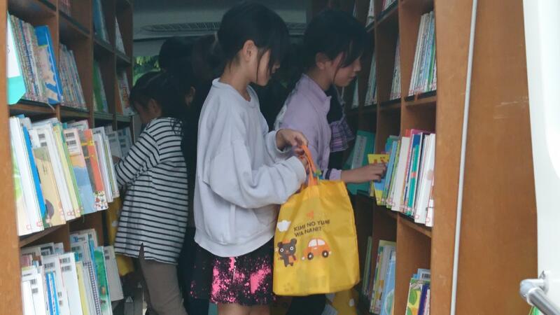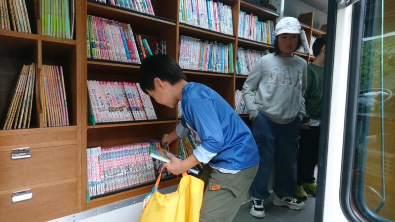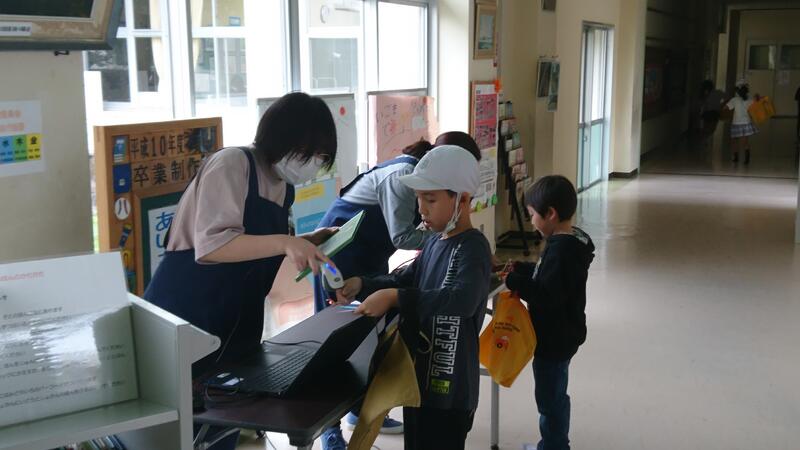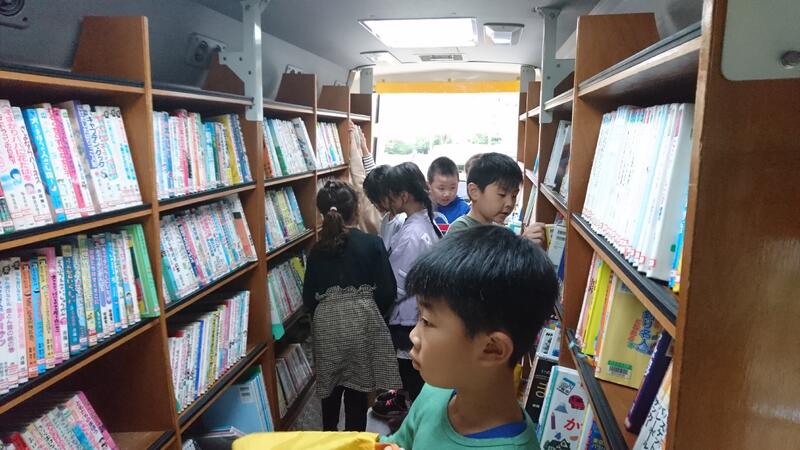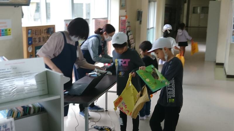 月1回の来校であるため,読書に意欲的な子どもたちは,目を輝かせて本を選び,楽しそうに係の方に貸し出し手続きをしてもらっていました。本日は,図書ボランティアの吉田広子さんがお手伝いをしてくださり,スムーズな貸し出しとなりました。