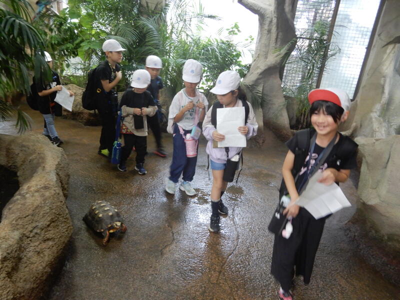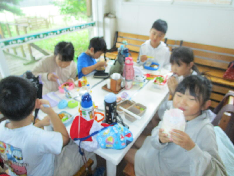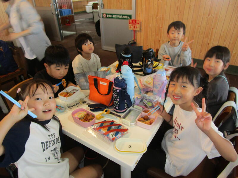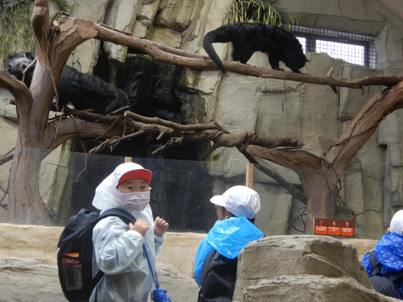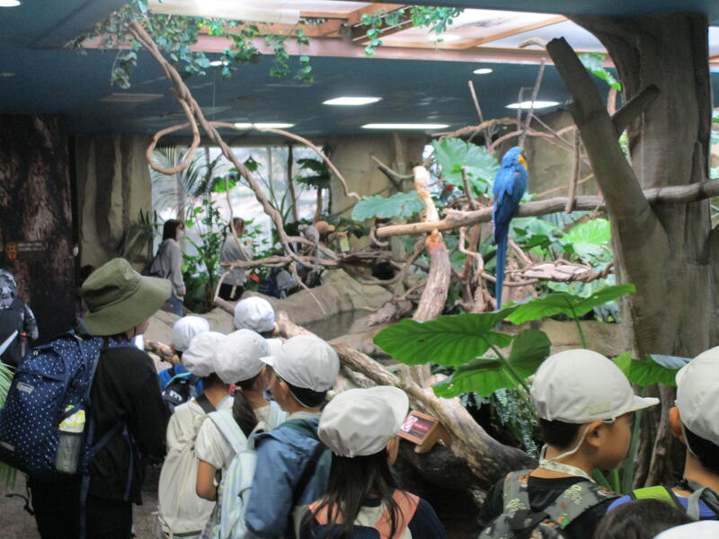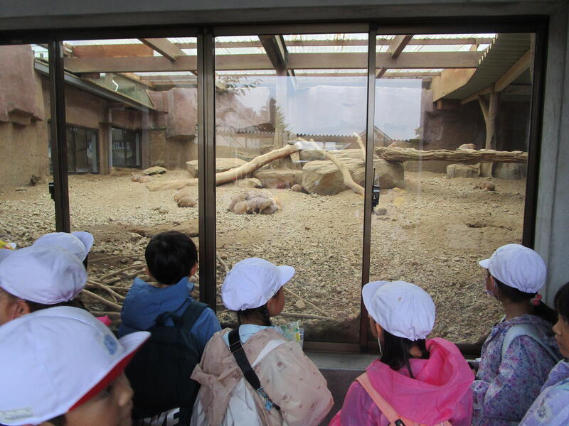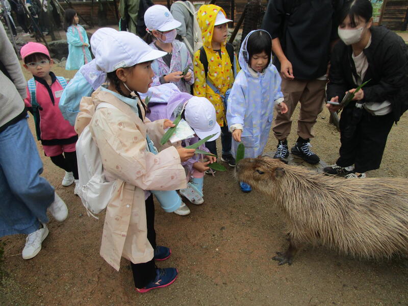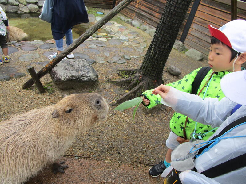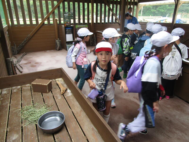 当日は,生憎の天候で,少し雨に降られたため,予定していた活動(バードショー)が中止となりましたが,たくさんの動物を見たり,動物と触れ合ったりして楽しい思い出をたくさん作ることができました。お昼は,室内のバーベキューガーデンで頂きました。グループ毎にテーブルに着き,おいしいお弁当とおやつを食べて,大満足の子どもたちでした。
