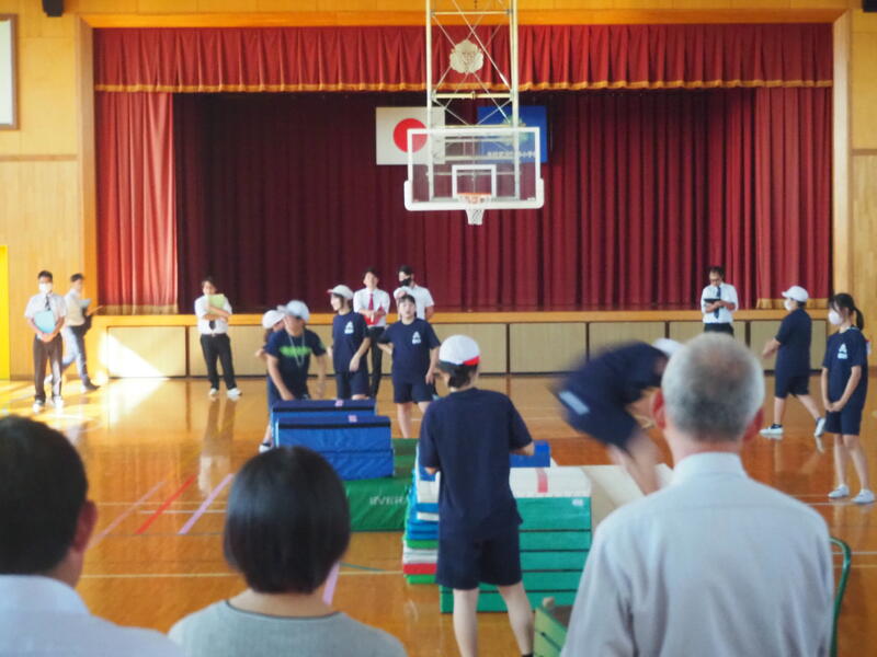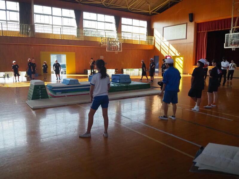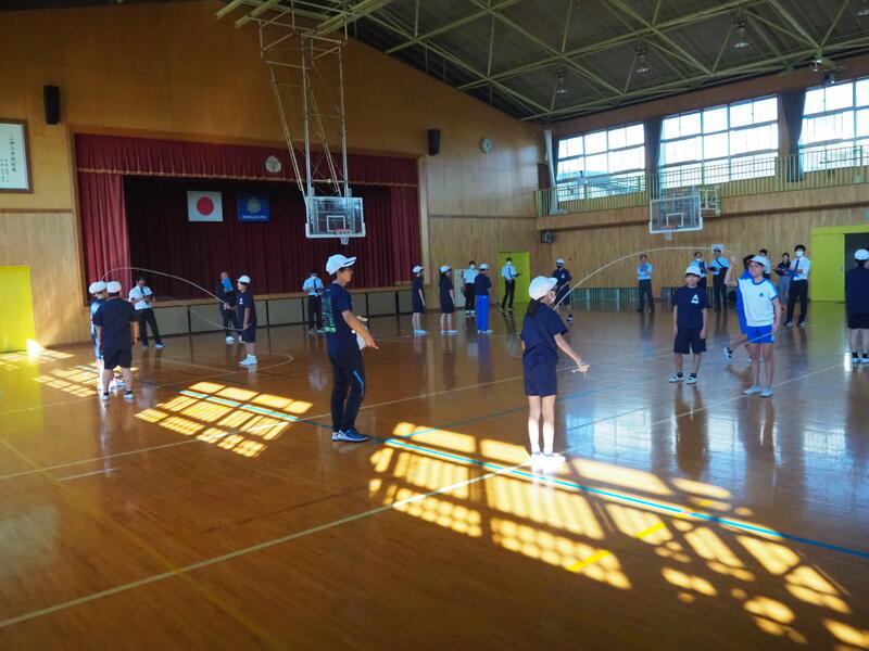 授業では,なわとび運動(ダブルダッチ)と跳び箱運動を実施しました。