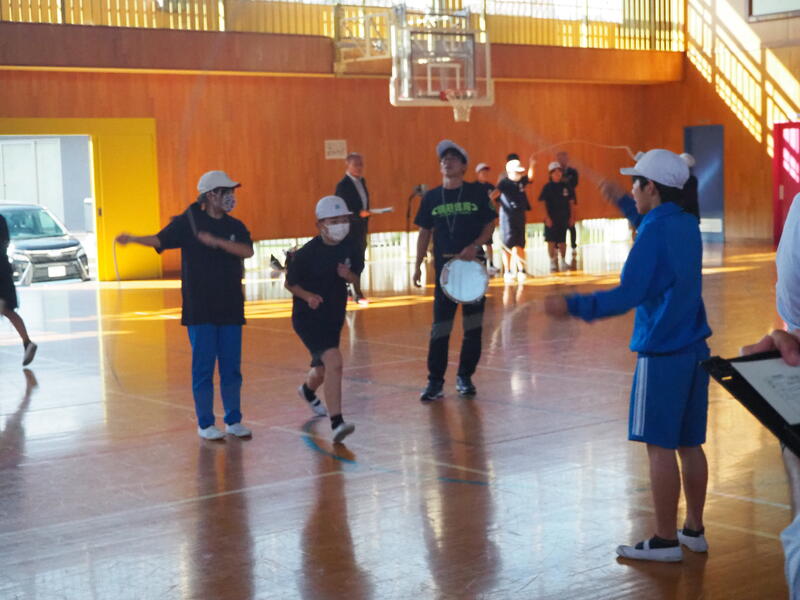 ダブルダッチは,縄を回す2人が2本の縄を交互に回し,その中に別の人が入って縄を跳ぶという高度ななわとび運動です。先日の学習発表会では,4年生が披露しました。