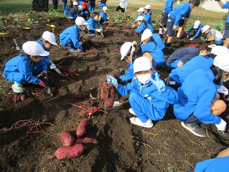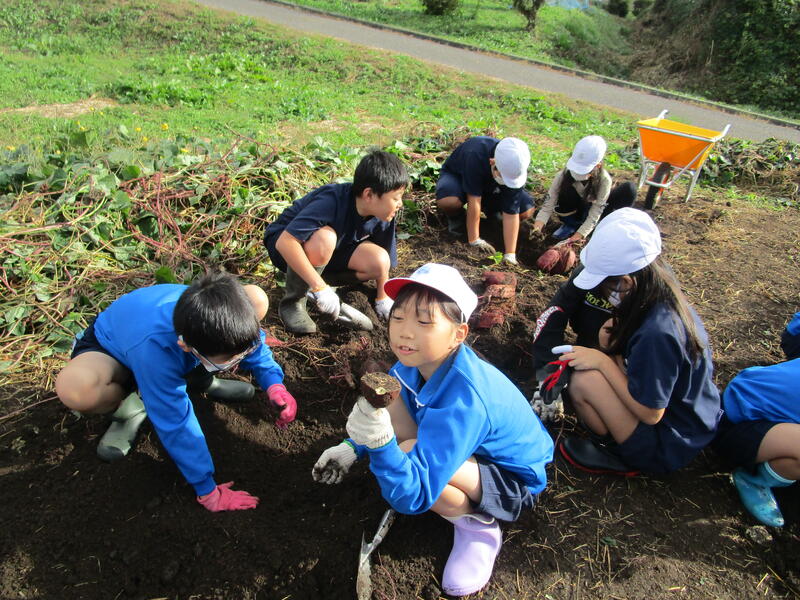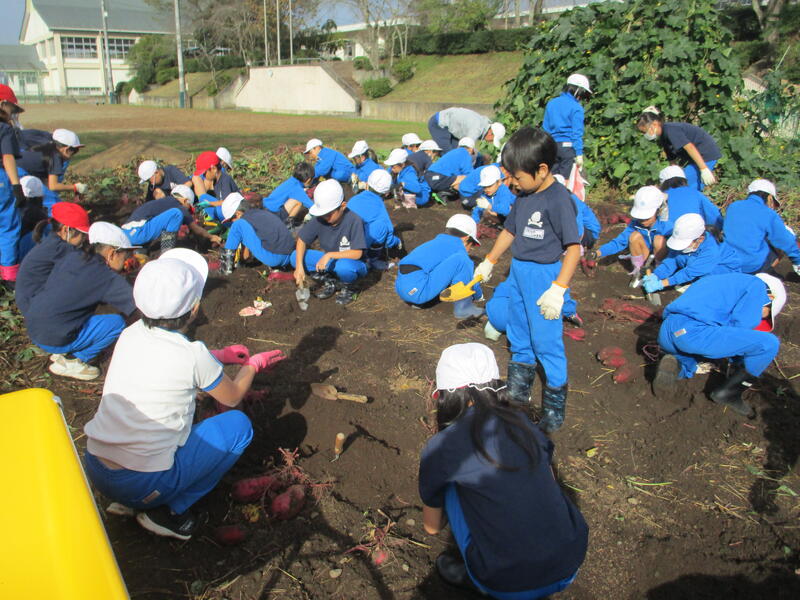 10月22日(火)の朝の時間に,1年生から4年生の子どもたちでサツマイモ掘りをしました。