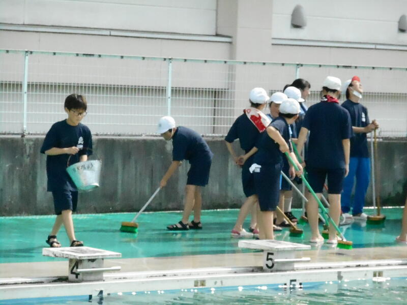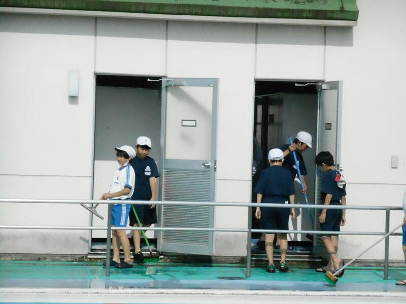 5・6年生の子どもたちは,5校時までしっかり勉強をし,14時50分からの6校時に,元気溌剌でプール清掃に臨みました。天候にも恵まれ,水の冷たさも気持ちいいコンディションの中での活動は,子どもたちのやる気を高めてくれました。大きな声で気持ちを一つに合わせてプールサイドの汚れ落としをする子どもたち,プールのトイレや更衣室を黙々と丁寧に掃除をする子どもたち,人の気が付かない汚れを見つけてきれいに落とす子どもたち,それぞれが真剣に取り組み,プールサイドはきれいになりました。