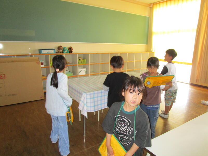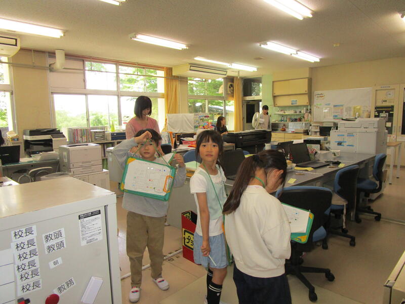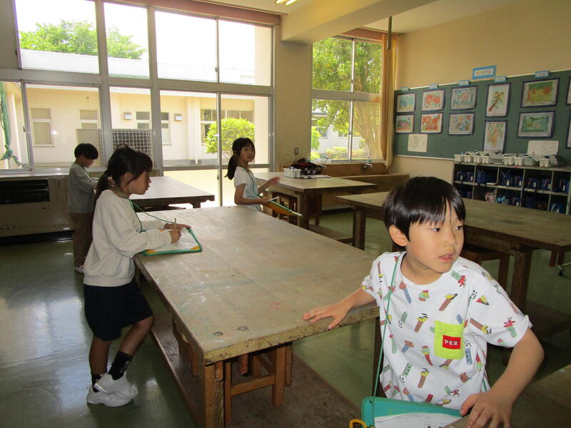 5月22日には,2年生のお姉さん・お兄さんの案内を受けながらの探検を行いましたが,今回は,自分たちでグループを決め,学校の中を思い思いに探検しました。2年生に教えてもらったことを思い出したり,自分たちで知っていることを確かめたりしながら,グループの友だちと協力して活動することができました。