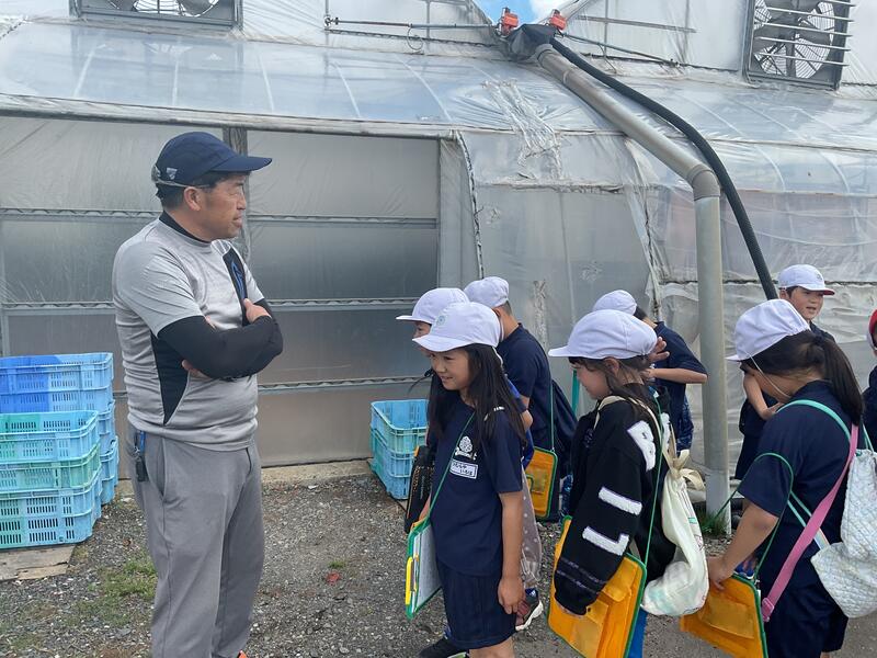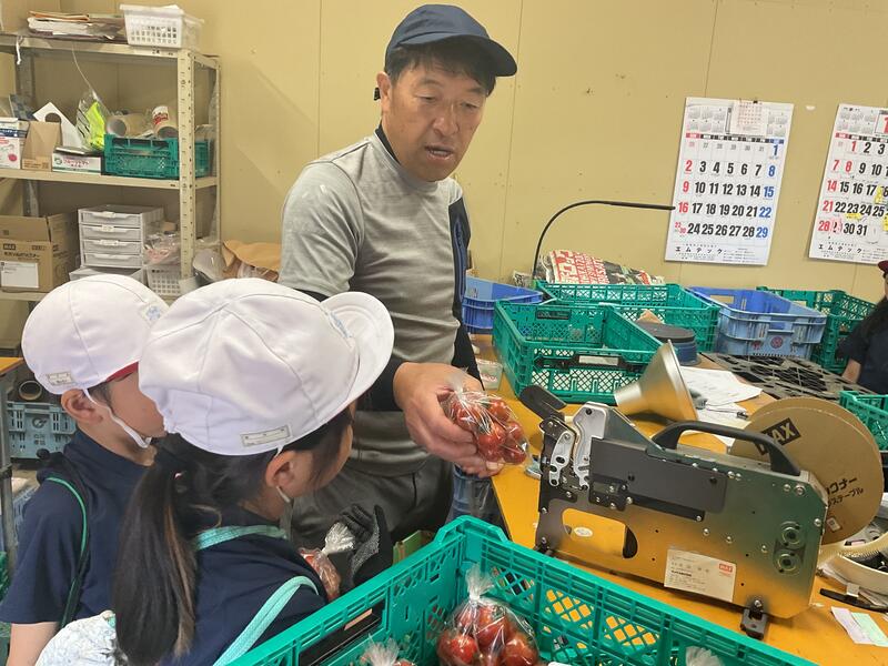 6月3日(月)に,3年生は三神地区のトマト農家・関根幸一郎さん宅を訪ねました。