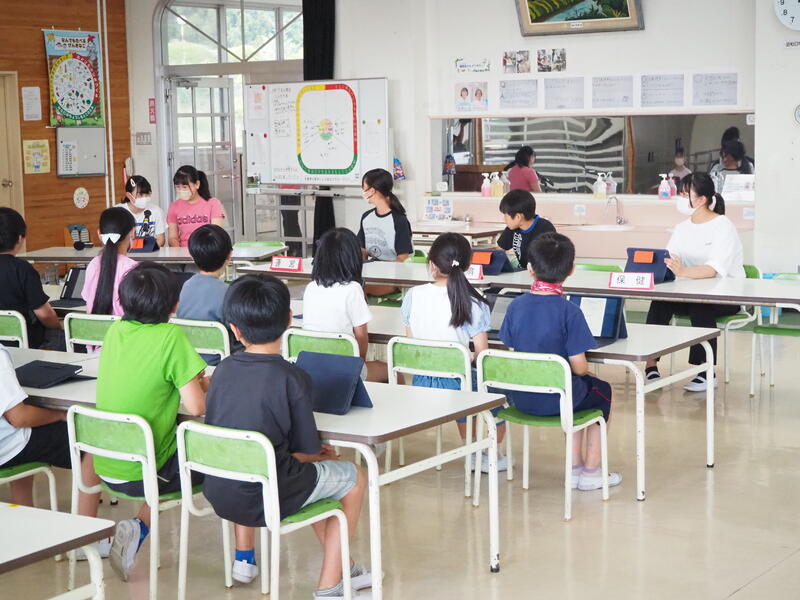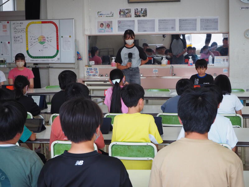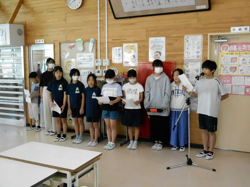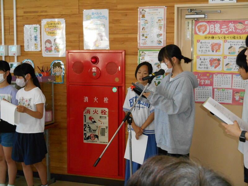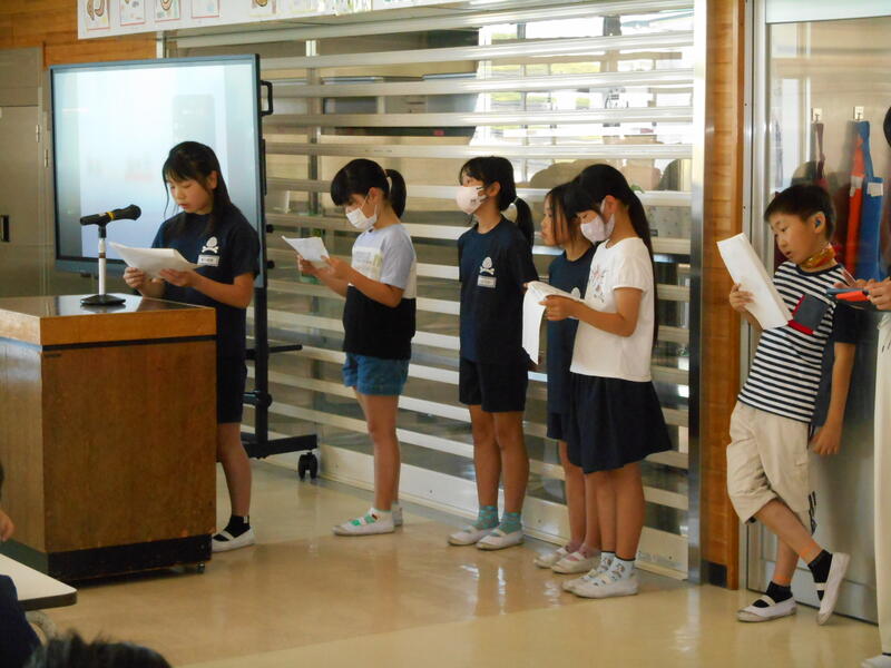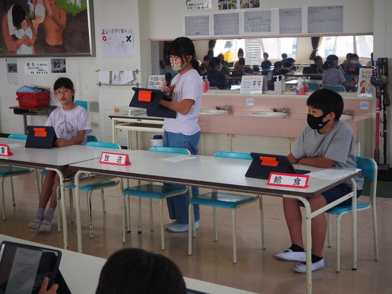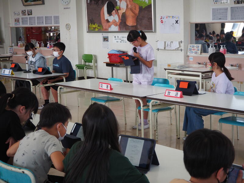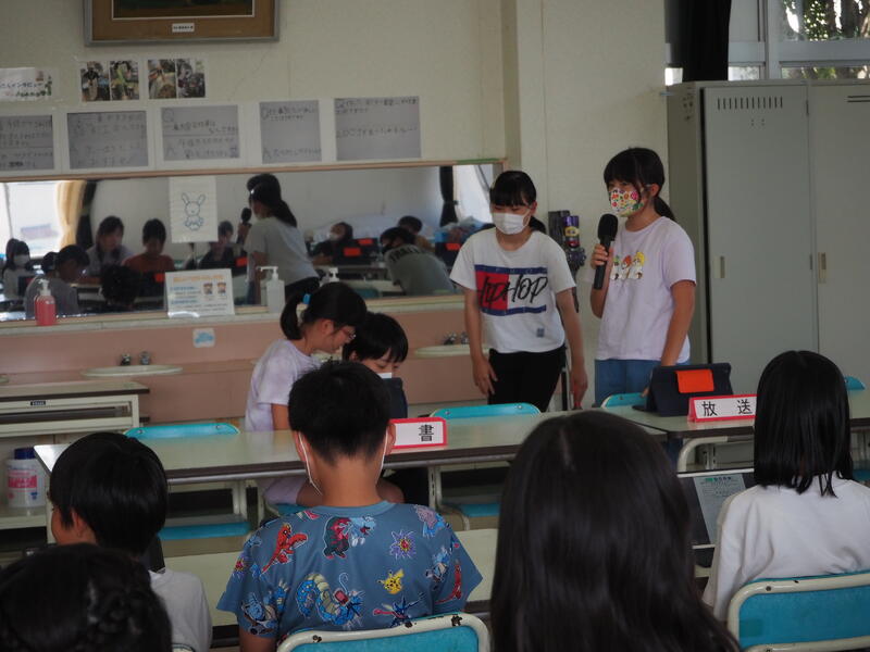 6月4日(火)には,春季全日本小学生女子ソフトボール大会「入賞」の表彰(県南ガールズ代表:6年堀井柚希さん)を行った後に,放送委員会企画の今年度三神小学校のメンバーになった先生と1年生へのインタビューの番組を放送しました。