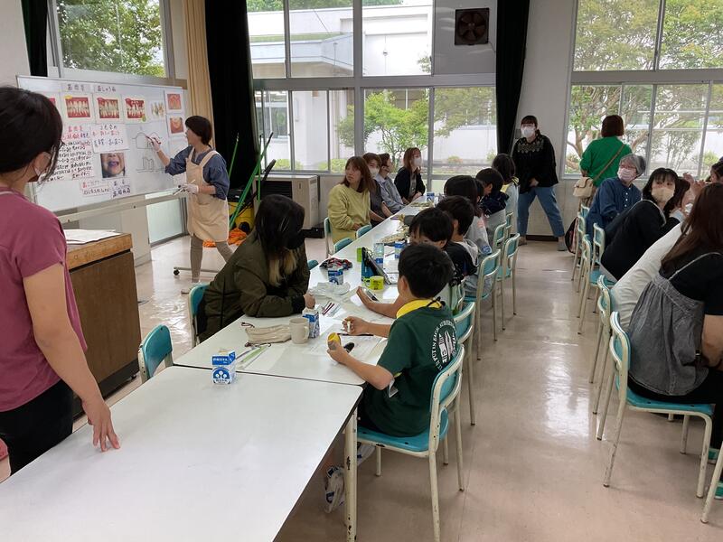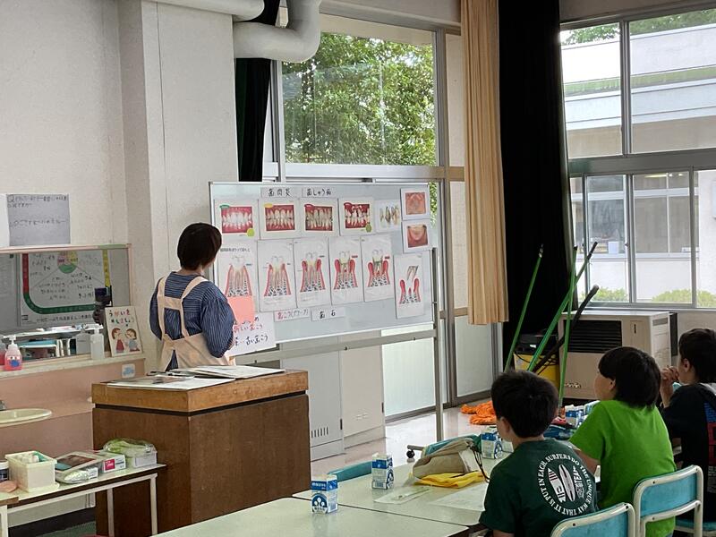 1年生の児童とその保護者には、むし歯のできる仕組みや歯みがきの大切さを,5年生の児童とその保護者には,歯肉炎の起こる仕組みとその予防のためのブラッシングの仕方を教えていただきました。