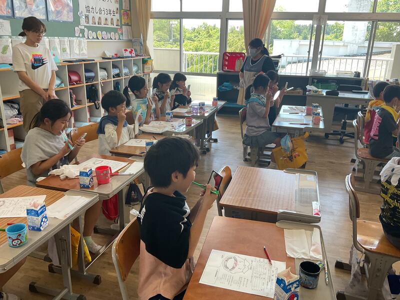 さらに,6月11日(火)には,宮本さんと同じく町の歯科衛生士の野崎久美子さんにも来校していただき,2・3・4・6年生の児童を対象に歯みがき教室を開催しました。