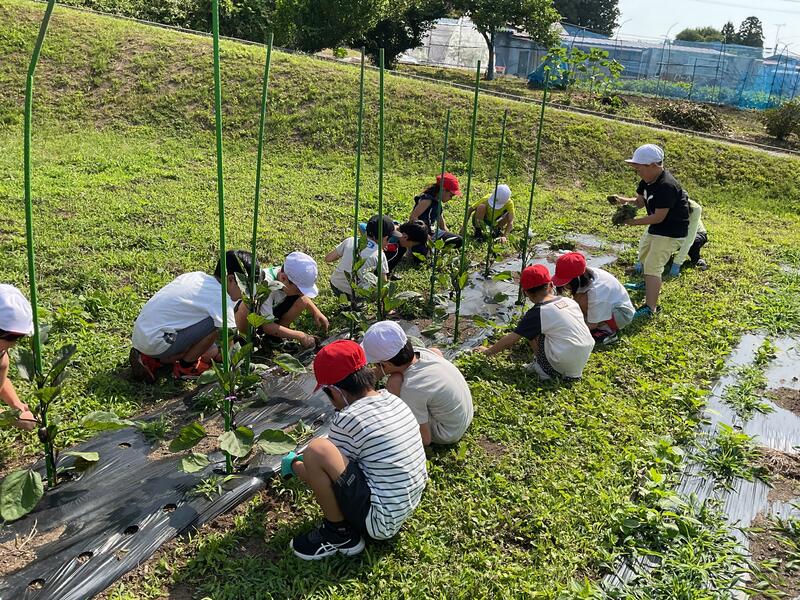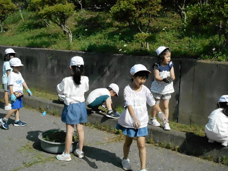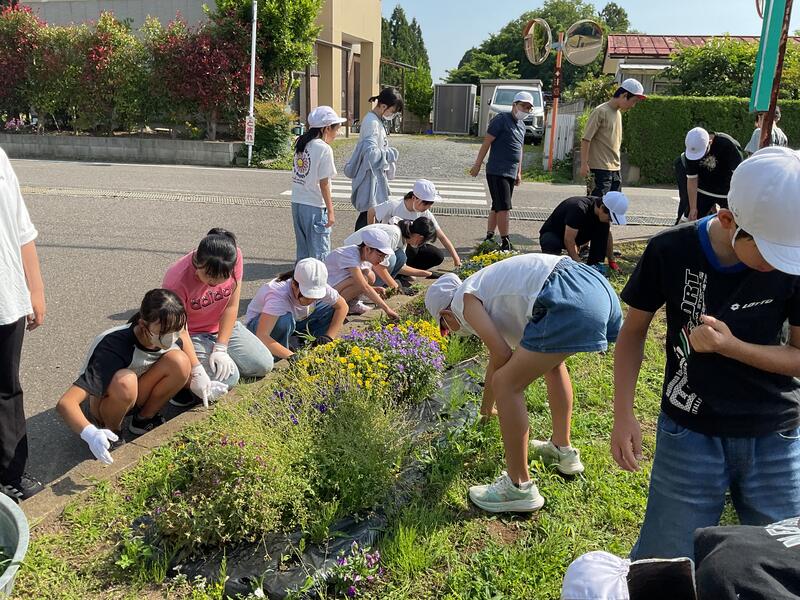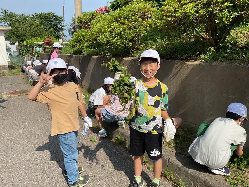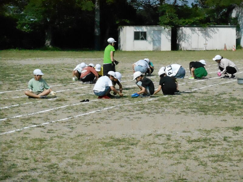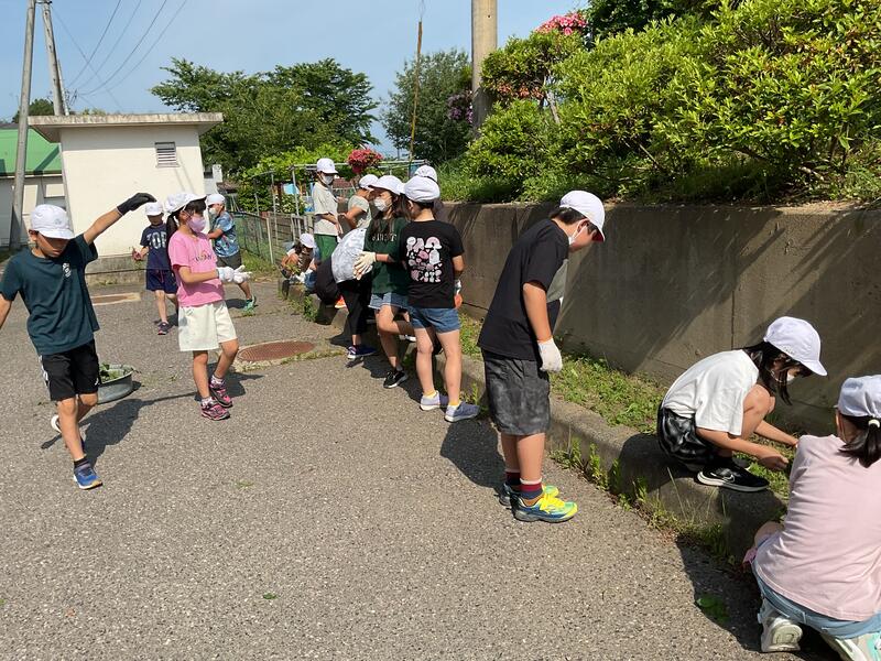 1年生から6年生までの全校児童が,自分たちの育てている植物の植えてある畑や管理している花壇,校庭などの除草作業をしました。PTAの奉仕作業から2週間余りがたちましたが,適度な雨と気温の上昇により,下校庭では草花がどんどん成長しております。自分達の分担の終えた学年が下校庭の除草作業にも取り組んでくれました。