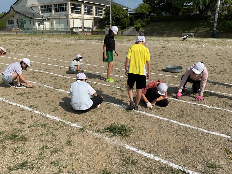 6月12日(水)の朝の時間に,緑の少年団活動で,上校庭やその周辺の除草作業を行いました。