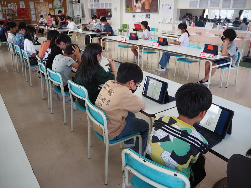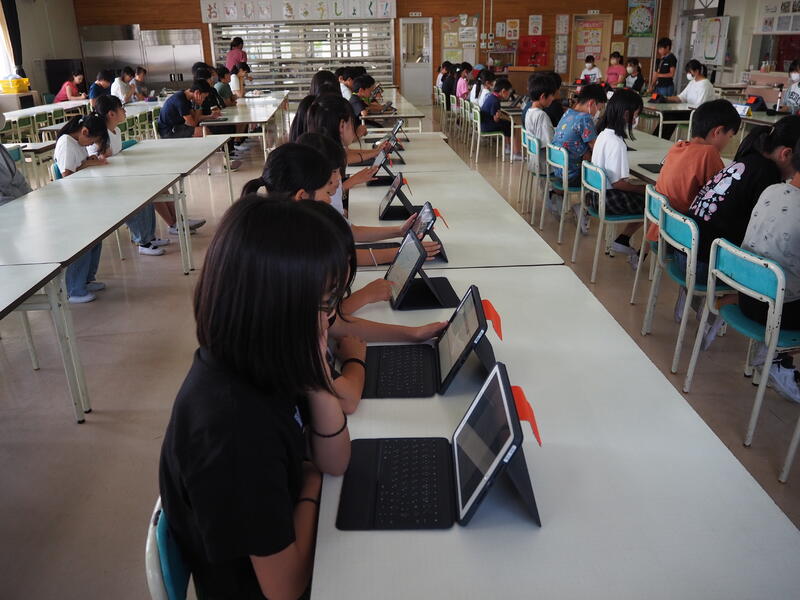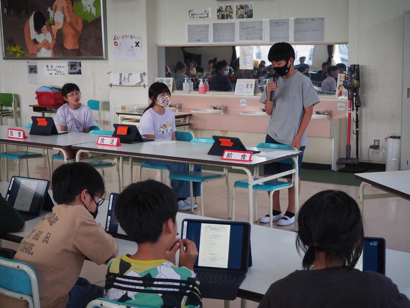 三神小学校はICTの活用を推進しておりますので,総会要項・資料はすべてペーパーレスで,児童や先生の各タブレットに送信され,それをもとに協議を行いました。