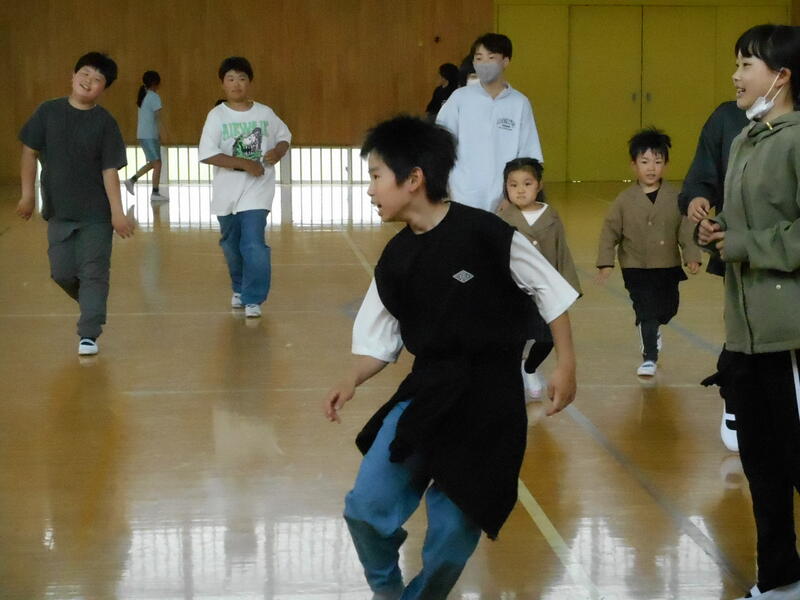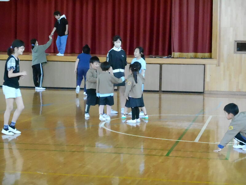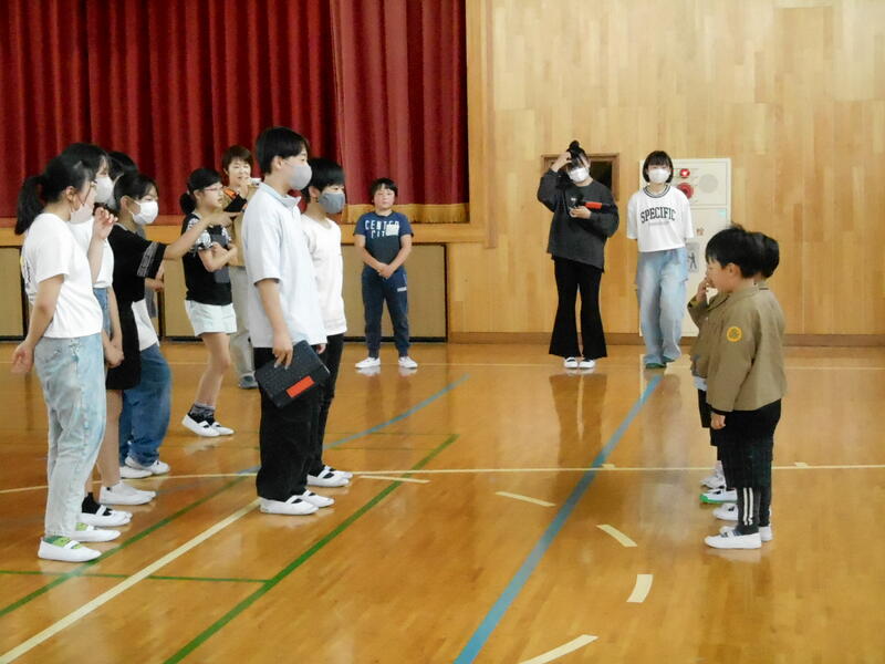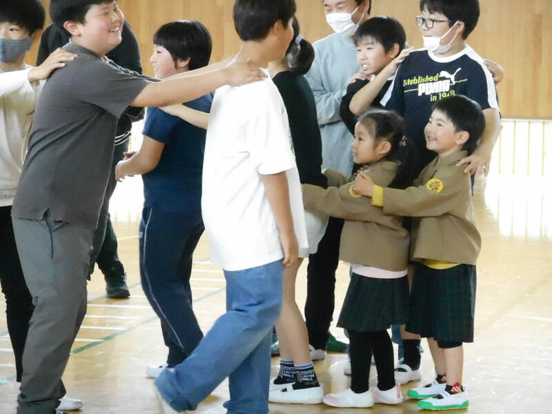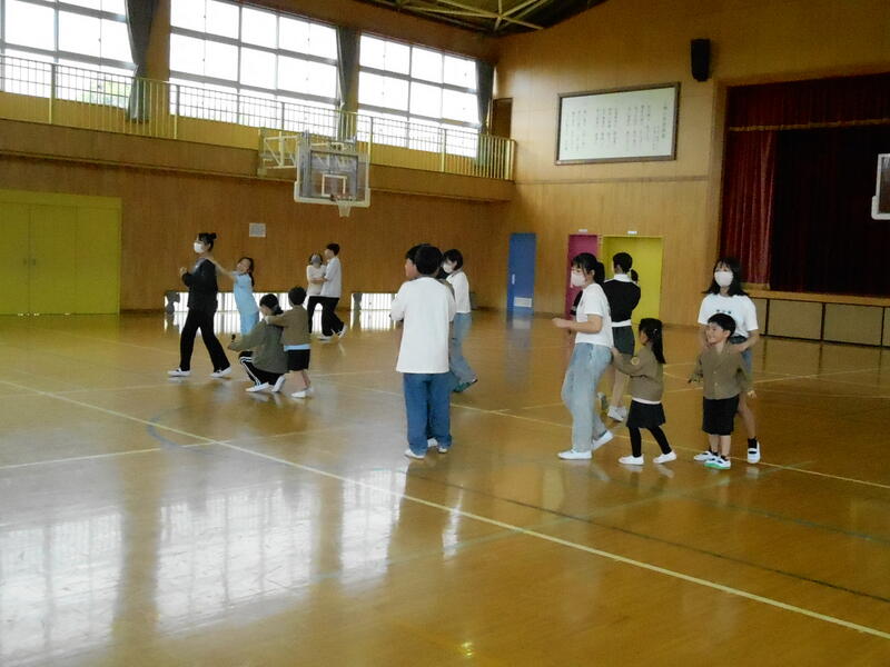 今回は6年生と幼稚園年長児の交流でした。新年度が始まって1ヶ月,そして大型連休のはざまということもあり,園児の中には体調を崩す子が多く,参加できたのは5名でした。6年生は,幼稚園児を楽しませようと計画,準備を進め,当日を迎えました。お互いにあいさつをした後,ハンカチ落としやじゃんけん列車,川渡りをして楽しく交流をしました。初めは緊張気味だった園児たちも時間がたつにつれ,緊張がほぐれて笑顔がたくさん見られるようになりました。最後に,幼稚園児からお礼の感想の発表があり,6年生の子どもたちからも満足気な表情とほっこりした笑顔がたくさん見られました。