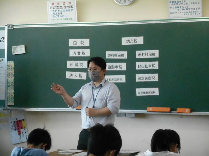 「自分たちの身の回りにはどんな税金があるのか」,「税金が無くなったらどんな生活になるのか」などについて,補助資料やDVDの映像教材を活用して学習しました。