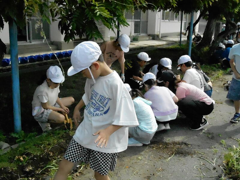 天気も良く,子どもたちは,割り振られた花壇や畑の草引き,球根取り等をしました。