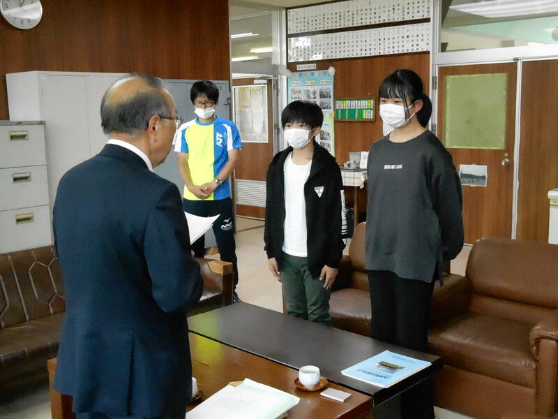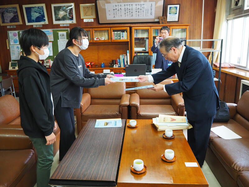 児童代表として,6年生の内藤一颯さんと菊地陽音さんが贈呈を受けました。