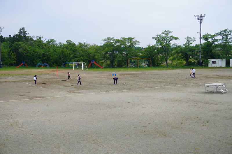 その後、教職員でラインを引いたり、校庭の整地を行ったりしました。