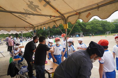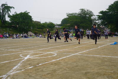 長机やパイプ椅子、運動会で使う物品、テント等を協力して運んでくれました。また、校庭をならしたり、石を拾ったりして会場をきれいにしてくれました。