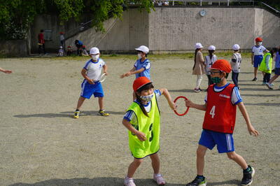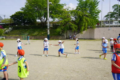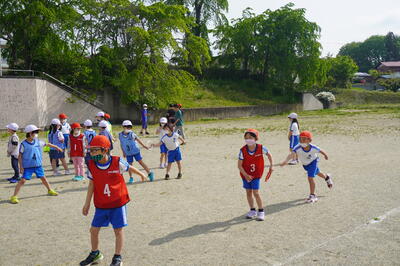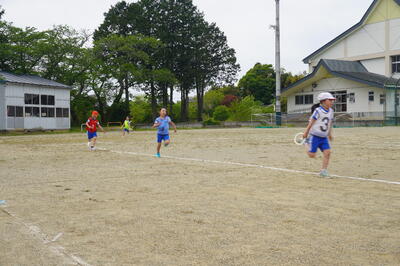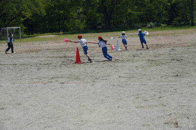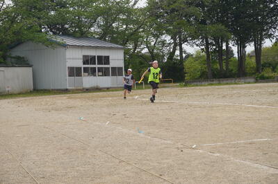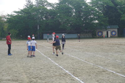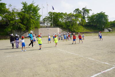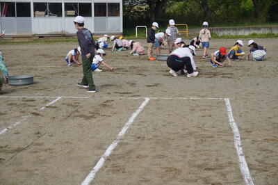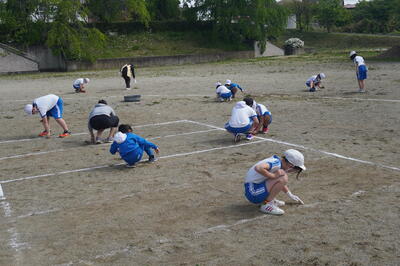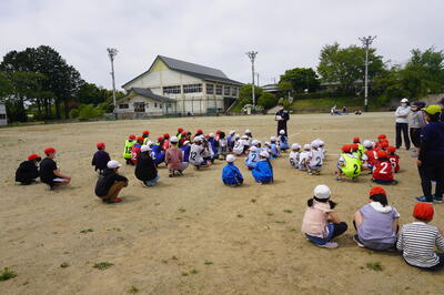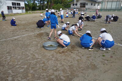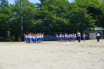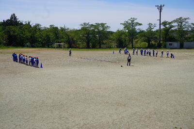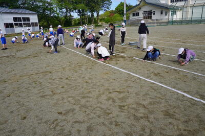5月10日(火)の4校時目に、3・4年生が運動会の団体種目の練習を校庭で行っていました。