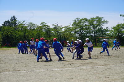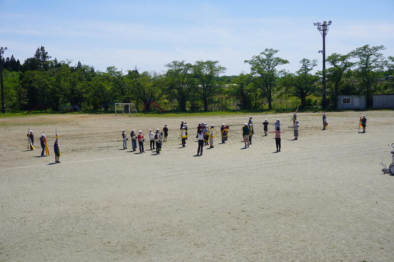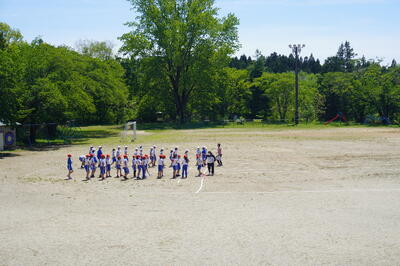 5月10日(火)の3校時目に、5・6年生が運動会の団体種目の練習を校庭で行っていました。