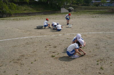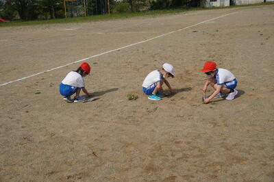 5月12日(木)の朝の活動の時間に、2年生が緑の少年団活動を行いました。これは、昨日の緑の少年団活動に参加できなかったため、2年生だけが校庭の除草を行ってくれました。