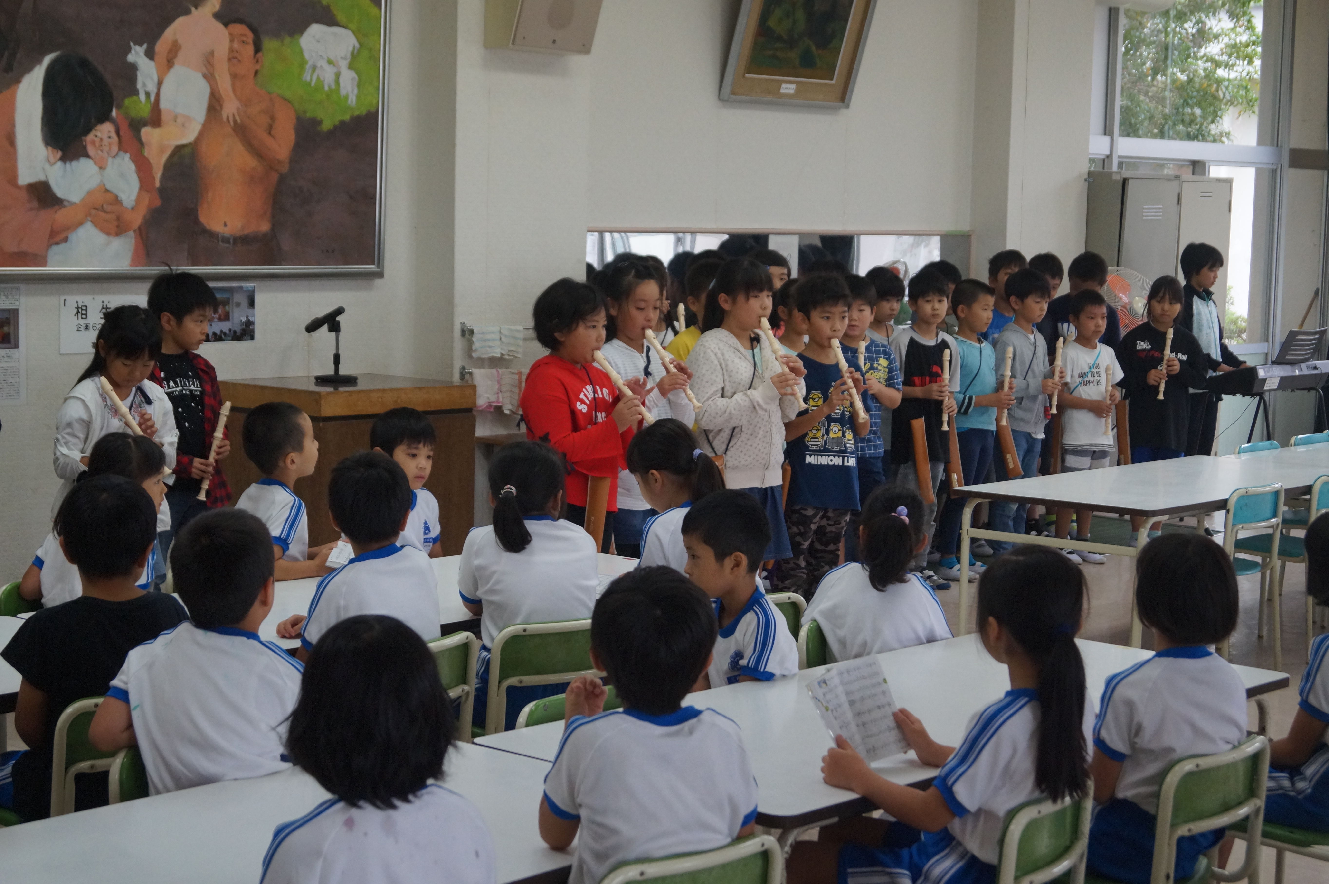 地区音楽祭で、リコーダーで演奏した「カントリーロード」を全校生の前で