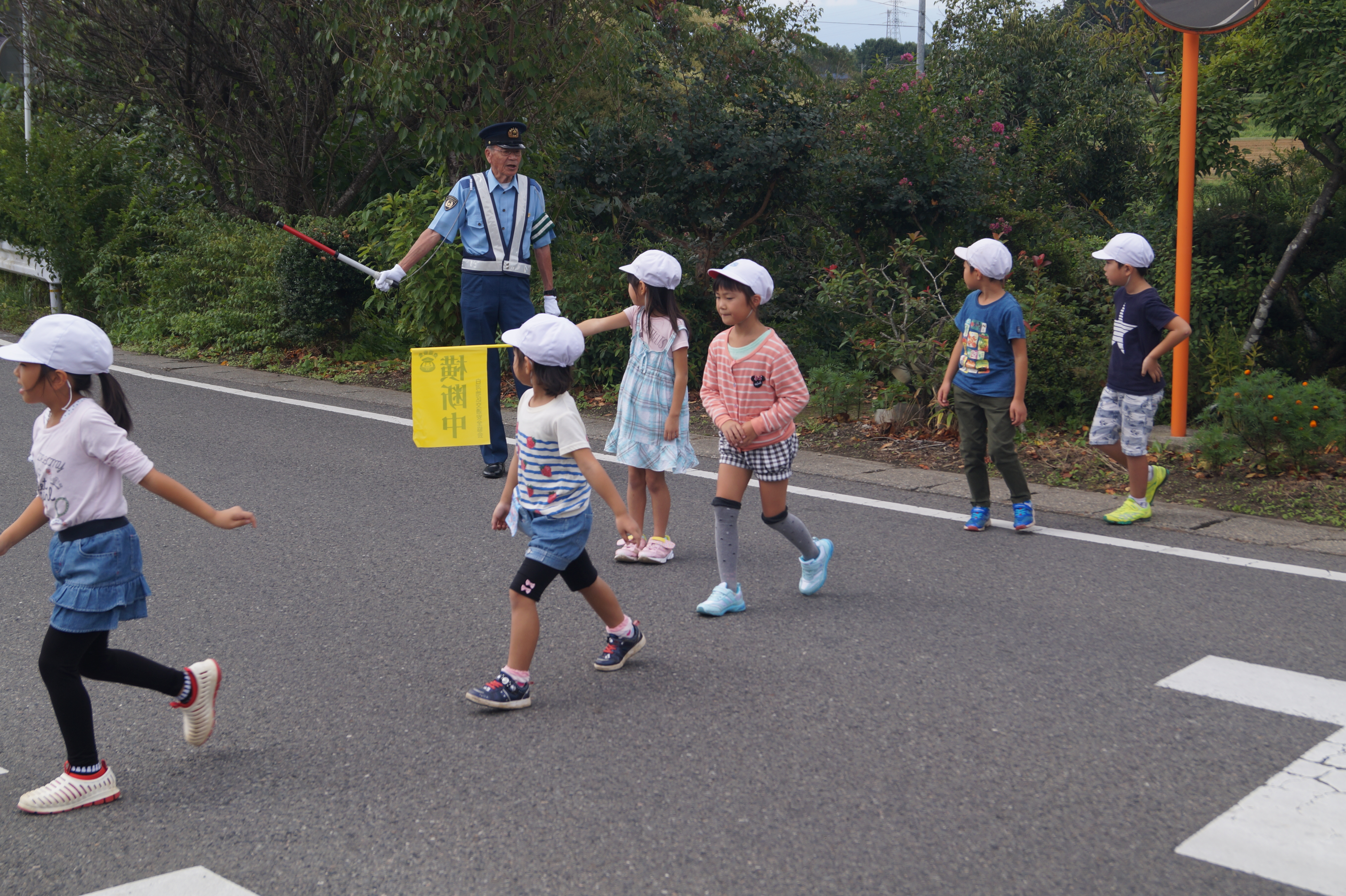 1・2年生は、安全な歩き方について教えていただきました。学校周辺の交通量が少し多いところを実際に歩き、左右を確認して横断すること、一列になって歩くことなど、事故にあわないために大切なことを確認することができました。