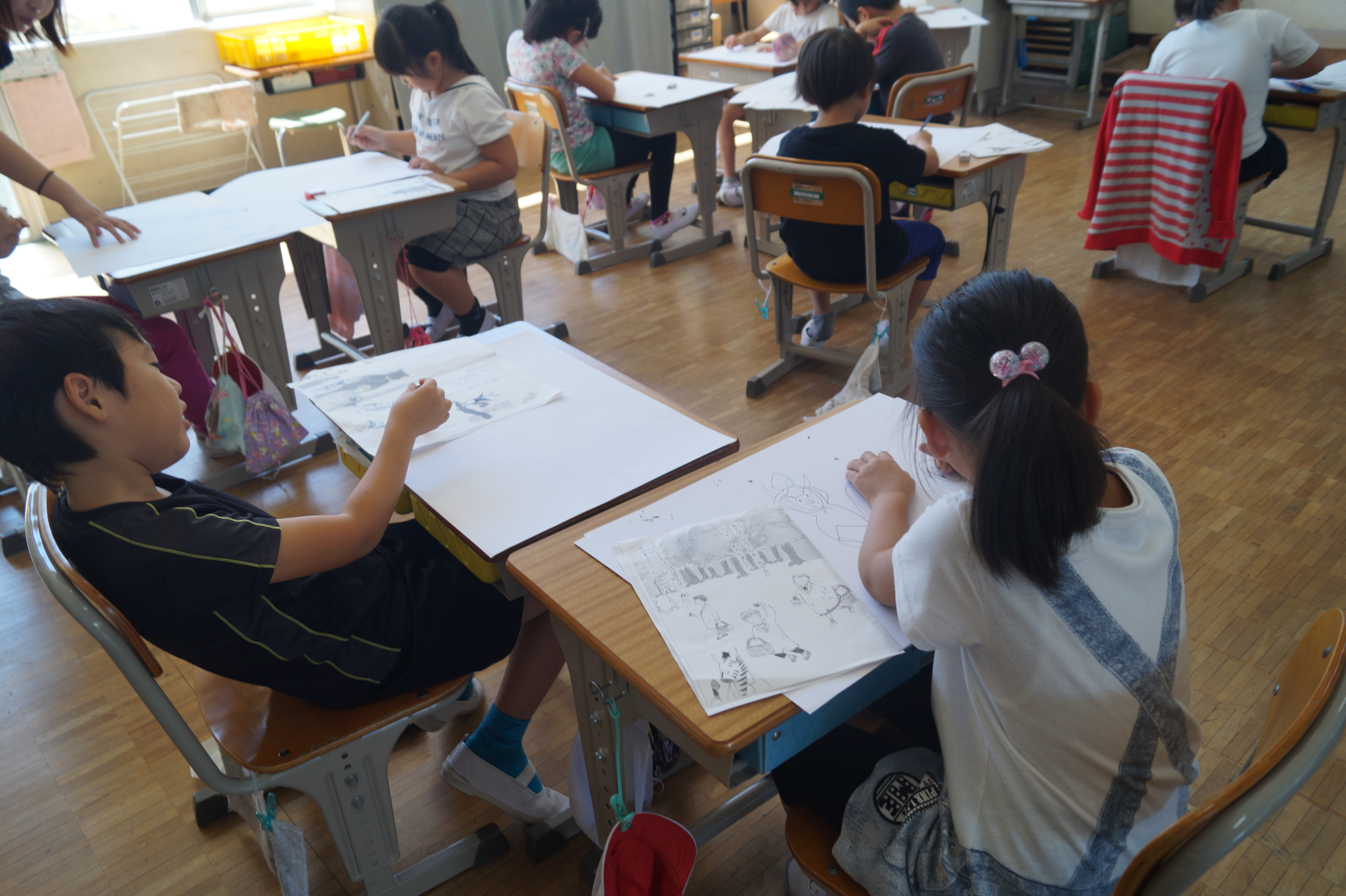 他の学年も、「芸術の秋」の名のように、想像した絵、虫や動物の絵、読書した感想画など絵画に取り組んでいます。