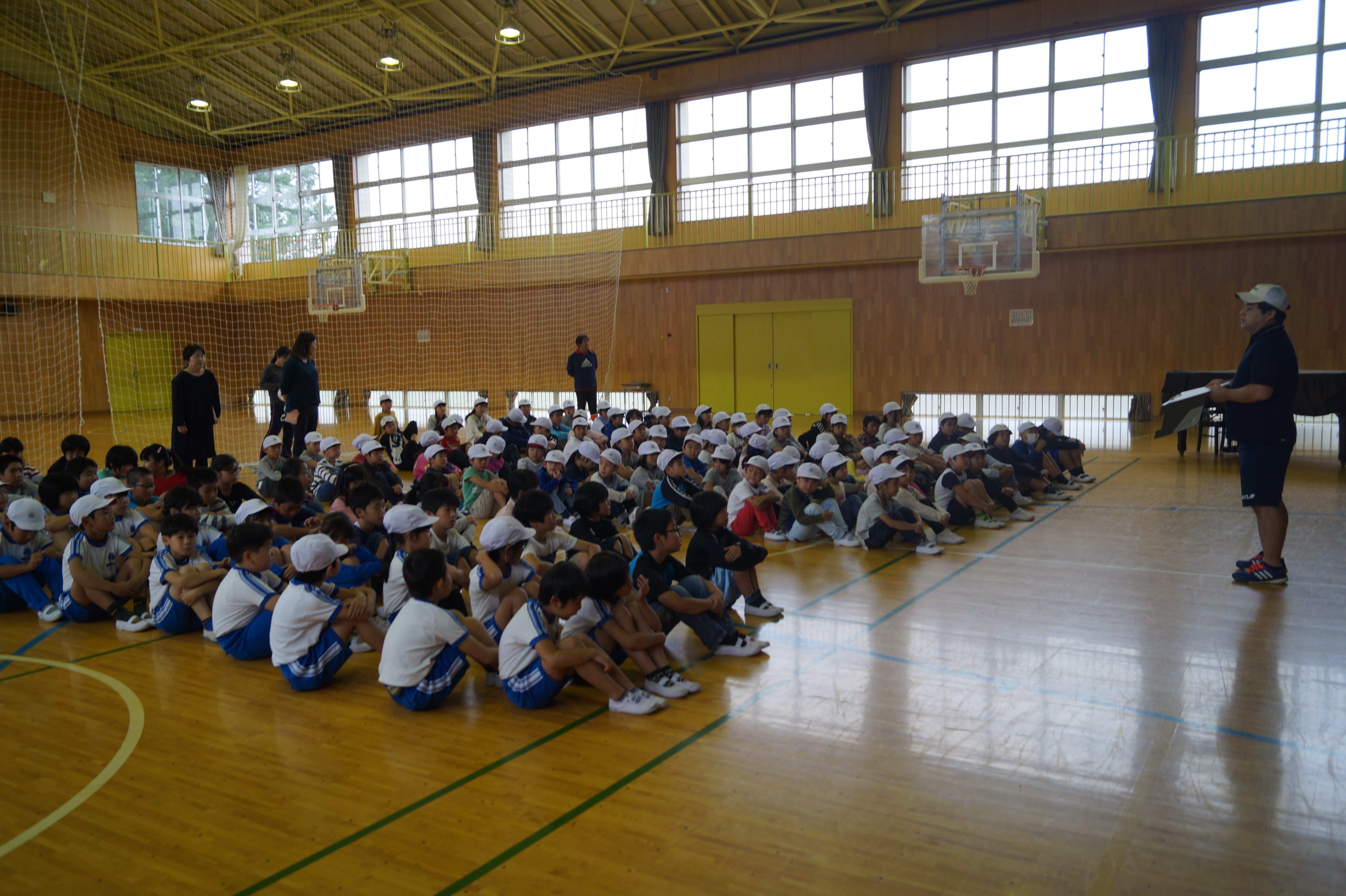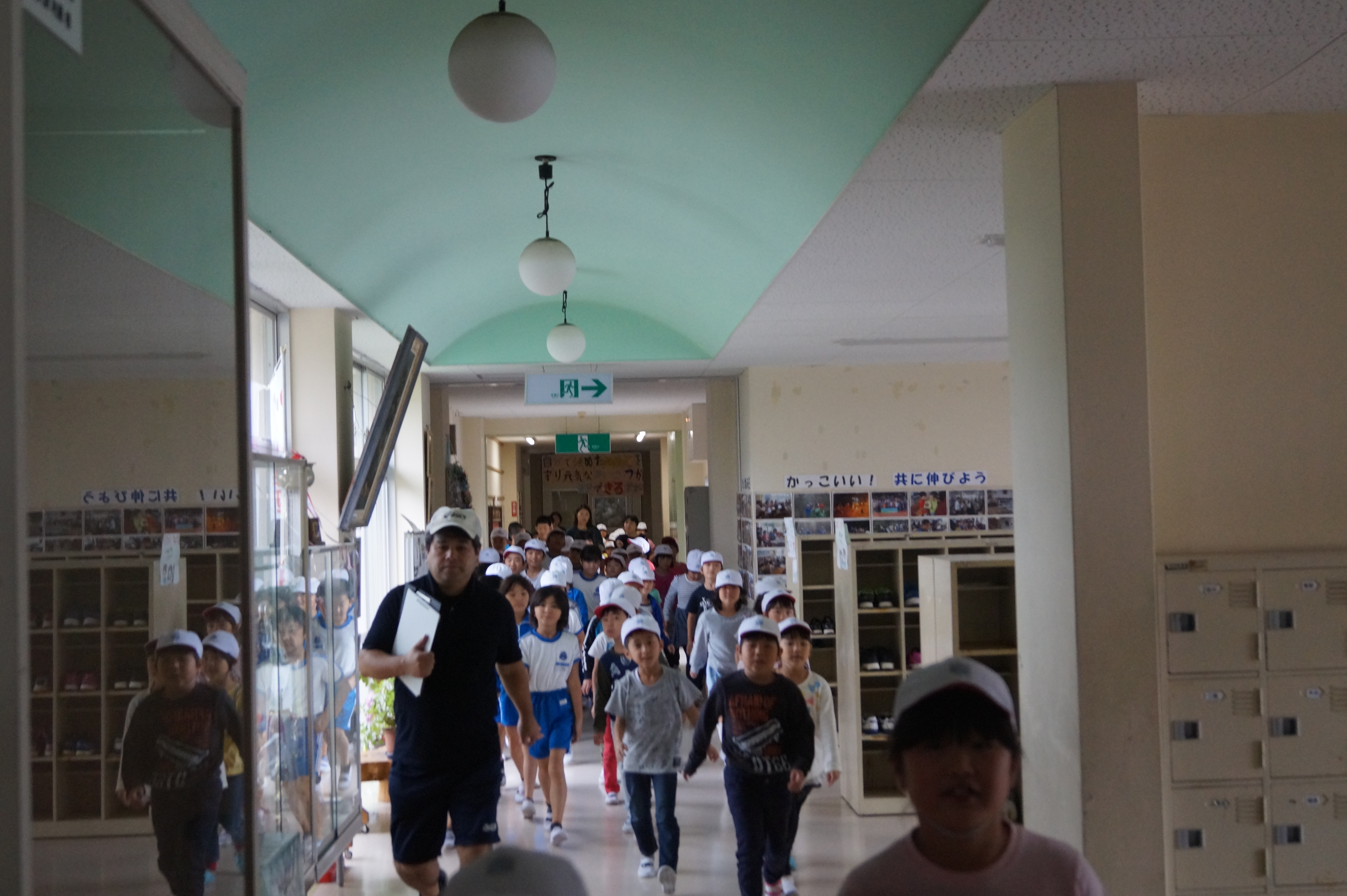 きちんと避難できるか心配しましたが、教室にいた子ども達は、すぐに紅白帽子をかぶって整列でき、教室以外にいた子ども達も放送を聞いて避難することができました。