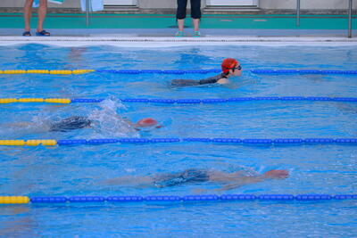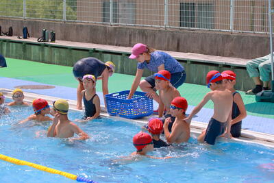 3・4年生は、ほとんどの子どもたちがビート板で25mを泳ぐことができるようになりました。また、25m自由形で25mを泳ぎ切る子どもも増えてきました。来年が楽しみです。