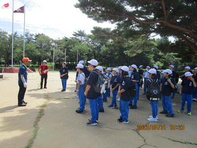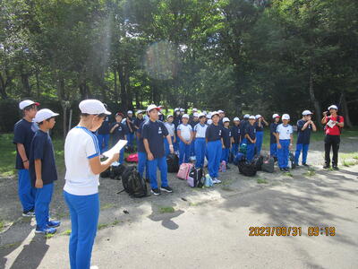 教頭先生からお話をいただき、みんな元気に出発しました。