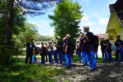最初の活動は、「パノラマハイキング」でした。2名の案内人の方にガイドをしていただき、森の動植物について説明をしていただきながら、ハイキングコースを散策しました。