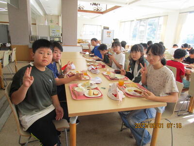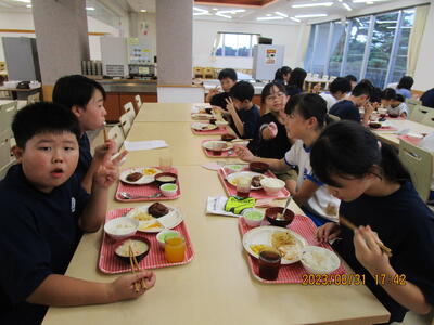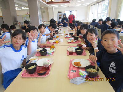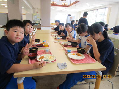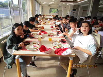 班ごとに、みんな仲良く食べています。